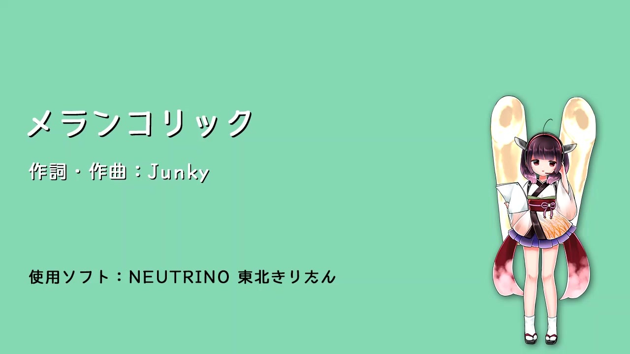 本家:<a href="https://www.nicovideo.jp/watch/sm10444862" target="_blank" rel="noopener nofollow">https://www.nicovideo.jp/watch/sm10444862</a><br>作詞・作曲:Junky様<br><br>NEUTRINOの東北きりたんライブラリで、メランコリックの1コーラスを歌った動画です。<br>NEUTRINOホームページ <a href="https://n3utrino.work/" target="_blank" rel="noopener nofollow">https://n3utrino.work/</a><br>SHACHI様のTwitter @SHACHI_KRTN<br><br>ボーカルにはイコライザーとリバーブのみエフェクトを掛けています。