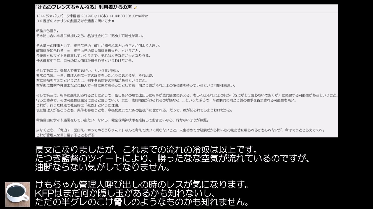 <span style="font-size: 13px;">クライアントがAGNと考える理由と、騒動までの流れの冷奴です。</span><br><a href="#" class="seekTime" data-seekTime="0:33" onclick="seekNicoPlayer('#0:33'); return false;">#0:33</a> クライアントの冷奴、<a href="#" class="seekTime" data-seekTime="2:37" onclick="seekNicoPlayer('#2:37'); return false;">#2:37</a> AGNの目的 <a href="#" class="seekTime" data-seekTime="5:00" onclick="seekNicoPlayer('#5:00'); return false;">#5:00</a> ネクソン版 <a href="#" class="seekTime" data-seekTime="7:30" onclick="seekNicoPlayer('#7:30'); return false;">#7:30</a> ライセンサー問題 <a href="#" class="seekTime" data-seekTime="13:03" onclick="seekNicoPlayer('#13:03'); return false;">#13:03</a> 中国に放映権売却 <a href="#" class="seekTime" data-seekTime="17:47" onclick="seekNicoPlayer('#17:47'); return false;">#17:47</a> 9.25以降<br>長くなったので、クライアントの冷奴とそれ以外で動画を分けるべきだったかもしれません。<br><br>CBS軟式野球大会<br><a href="http://www.cbs-bbs.or.jp/taikai/2015taikai.html" target="_blank" rel="noopener nofollow">http://www.cbs-bbs.or.jp/taikai/2015taikai.html</a><br>ぼくらの裁判員物語:<a href="https://www.nicovideo.jp/watch/sm331066" class="watch">sm331066</a><br>たつき監督と吉崎先生の不仲の経緯:<a href="https://www.nicovideo.jp/watch/sm35311455" class="watch">sm35311455</a><br>AGNが中国に放映権を売却したリーク:<a href="https://www.nicovideo.jp/watch/sm35344757" class="watch">sm35344757</a><br>KADOKAWAの内通者と思われる者の絞り込み:<a href="https://www.nicovideo.jp/watch/sm36375224" class="watch">sm36375224</a><br><br>関連動画まとめたマイリスト:<a href="https://www.nicovideo.jp/mylist/67462831" target="_blank" rel="noopener">mylist/67462831</a><br>ツイッター:<a href="https://twitter.com/kemo2bombot" target="_blank" rel="noopener nofollow">https://twitter.com/kemo2bombot</a>