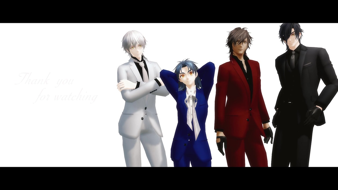 早いもので、3作目の投稿となりました。(※1080p対応)<br>前回の動画にも、沢山の広告や温かいお言葉をいただき、とても嬉しかったです。<br><br>【前作】<a href="https://www.nicovideo.jp/watch/sm36361771" class="watch">sm36361771</a><br><br>今回は大好きな曲、大好きな振り付けで、伊達の4振りにかっこ良く決めてもらおうと奮闘してみました。可愛い伊達も、和気藹々な伊達も、切なさ漂う伊達も、奮戦繰り広げる伊達も好きですが、やはり一度は伊達男たちの伊達男たる姿が見たい!と微々たるセンスを振り絞ってみたつもりです…っ!<br><br><span style="color: #ff0000;">動画内では、非公式のスーツを着用しておりますので、ご注意ください。</span><br>100万回くらい目にした言い回しですが、「伊達組がスーツを着用した時の堅気に見えない感」がこの上なく好みです。<br>それぞれに、どんな配色と着こなしが似合うかを考えながらお着替えさせるのは、とても楽しい作業でした。(みっちゃんのみ、sam様のモデルに含まれていた衣装をそのまま使用しております。)<br><br>お借りしたものは動画内クレジットとコンテンツツリーにて。全てに感謝申し上げます。ありがとうございました。(カメラは改変しております。)<br><br><br>それでは、また次回作にて!<br>お着替え楽しいな~!!何が楽しいって、体型を調整するために、麗しいモデル様を360度あらゆる角度から舐め回すように見る時間が楽しいんだよな~!!至福の時だよな~!!<br>変態ではありません。愛故の正当な振舞いです。<br><br><span style="color: #000000; font-size: 18px;"><strong>終わる!</strong></span><br><br><span style="color: #000000; font-size: 18px;">【追記】</span><br><span style="color: #ff00ff; font-size: 14px;">この度も広告、ありがとうございます!お名前、全て拝見しております。<br>心より感謝申し上げます。</span><br><br><span style="color: #000000;">Twitter→ @okk12372656 </span><span style="color: #006699;"><a href="https://twitter.com/okk12372656" target="_blank" rel="noopener nofollow">https://twitter.com/okk12372656</a></span><br><span style="color: #ff00ff;">↑この動画の副産物で【みっちゃんの助手席に他の3振り交代で座らせてみた動画】をTwitterに上げてみました。</span>