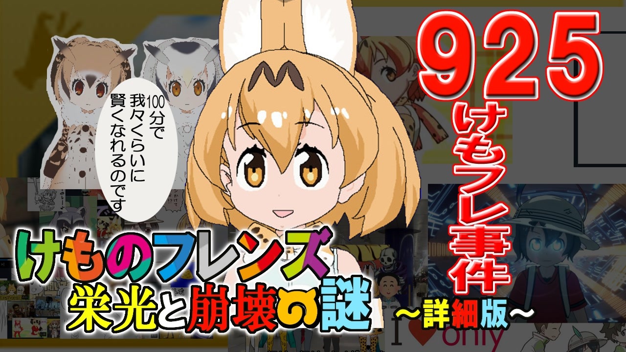 <span style="color: #ff0000; font-size: 24px;"><strong><u>2020年6月6日、5ちゃんねるにて再度<br>たつき監督への◯害予告が発生しました<br>岸本容疑者とは別件です。詳細は→ </u></strong></span><span style="color: #006699; font-size: 24px;"><strong><u><a href="https://www.nicovideo.jp/watch/sm36985660" class="watch">sm36985660</a></u></strong></span><br><br>肉声解説も全10回でアップしていますのでそちらもどうぞ →<a href="https://www.nicovideo.jp/watch/sm36441022" class="watch">sm36441022</a><br>肉声では本動画では触れていない確度の低い噂話も取り上げています。<br>本動画に含まれているけもフレファンにもあまり知られていない情報は以下のとおりです。<br>SNS等のアカウントをお持ちの方は拡散しファンの知識量を同一にできれば幸いです。<br><br>①岡田斗司夫ゼミ10月1日号「けものフレンズたつき監督降板騒動(中略)」<br><a href="https://www.youtube.com/watch?v=IdRKxgp4GYQ" target="_blank" rel="noopener nofollow">https://www.youtube.com/watch?v=IdRKxgp4GYQ</a><br><br>②文春砲(胸糞悪いので閲覧注意<br><a href="https://www.bilibili.com/video/av15190342/" target="_blank" rel="noopener nofollow">https://www.bilibili.com/video/av15190342/</a><br><br>③相棒17 10話「ディーバ」 Amazonプライム→season17→10話<br><br>※おまけ・デジタルハリウッド大学での福原Pの修了発表動画<br><a href="https://vimeo.com/264928532" target="_blank" rel="noopener nofollow">https://vimeo.com/264928532</a><br><br>【わからん】株式会社「ジンミャク」とはどんな会社か<br><a href="https://www.nicovideo.jp/watch/sm35134482" target="_blank" rel="noopener nofollow">https://www.nicovideo.jp/watch/sm35134482</a><br>KFP関連企業「ジンミャク」の調査続報<br><a href="https://www.nicovideo.jp/watch/sm35245327" target="_blank" rel="noopener nofollow">https://www.nicovideo.jp/watch/sm35245327</a><br><br><br>【チリーンウッドさんによるゆっくりが語る、けもフレ2炎上の歴史】<br><a href="https://www.nicovideo.jp/mylist/65845433?ref=pc_watch_description" target="_blank" rel="noopener nofollow">https://www.nicovideo.jp/mylist/65845433?ref=pc_watch_description</a><br><br>【うp主が作成したけものフレンズ関連動画】<br><a href="https://www.nicovideo.jp/mylist/58455489" target="_blank" rel="noopener nofollow">https://www.nicovideo.jp/mylist/58455489</a><br>【うp主が作成したけものケムリクサ関連動画】<br><a href="https://www.nicovideo.jp/mylist/65082387" target="_blank" rel="noopener nofollow">https://www.nicovideo.jp/mylist/65082387</a>