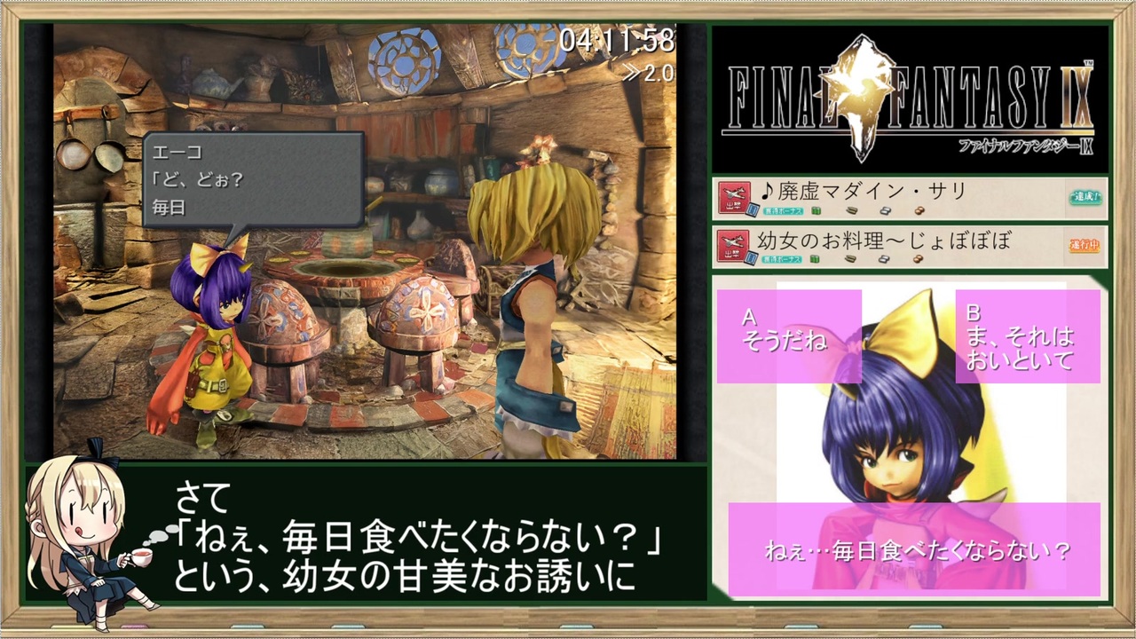 失踪してしまった人たちのこと<br>時々でいいから<br>思い出してください<br><br>【GAME】 <br>FINAL FANTASY Ⅸ(ファイナルファンタジー9)<br>Steam(PC版)<br><br>【レギュレーション】<br>・計測区間:NEW GAME選択~THE END表示<br>・ムービースキップ有<br>・オートセーブ使用<br>・連射コントローラ使用<br>・公式チート使用不可<br>※背景高画質化mod(Mogri mod)を導入しています<br><br>【<a href="https://www.nicovideo.jp/mylist/67167456" target="_blank" rel="noopener">mylist/67167456</a>】 <br>PREV≫<a href="https://www.nicovideo.jp/watch/sm36412532" class="watch">sm36412532</a><br>NEXT≫<a href="https://www.nicovideo.jp/watch/sm36500135" class="watch">sm36500135</a><br><br>Part.1≫<a href="https://www.nicovideo.jp/watch/sm36151772" class="watch">sm36151772</a><br><br><br>☆こちらもどうぞ★<br>≪前作≫42ターンで連邦を救う戦場のヴァルキュリア4<br>≫<a href="https://www.nicovideo.jp/watch/sm35571357" class="watch">sm35571357</a><br><br>≪前作RTA≫ドラゴンモエストⅥバーバラルートRTA_7:38:44_Part.1<br>≫<a href="https://www.nicovideo.jp/watch/sm35425017" class="watch">sm35425017</a><br><br>Other Cielo’s Title <br>【<a href="https://www.nicovideo.jp/mylist/50418741" target="_blank" rel="noopener">mylist/50418741</a> 】<br><br>twitter <a href="https://twitter.com/Cielo_Polo" target="_blank" rel="noopener nofollow">https://twitter.com/Cielo_Polo</a>