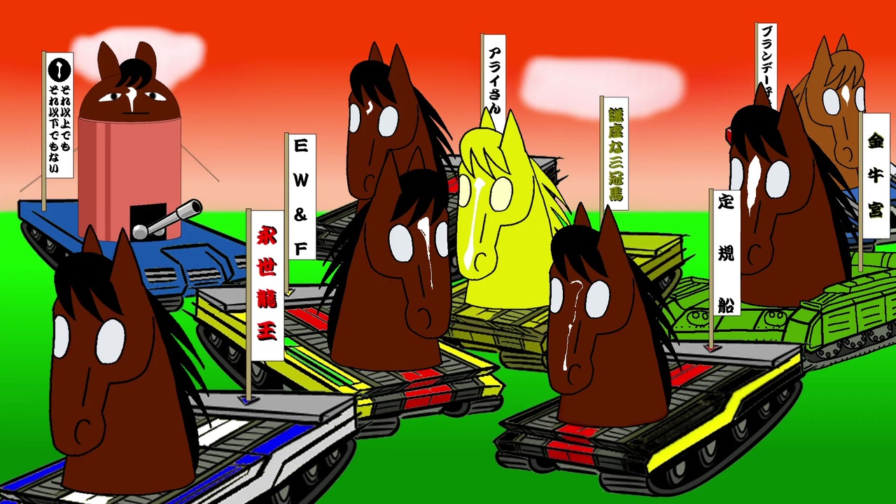 「第一に、在りし日の思い出を語る」<br>「第二に、遺志を継ぐ者達の活躍を応援する」<br>「第三に、時代を駆けた優駿として全ての役目を終えるのを最後まで見守る」<br>「お悔やみの言葉をかけるのは、それからでもいいさ」<br><br>大変長らくお待たせいたしました!種牡馬の戦い2019年版でございます。<br><br>画像素材は主に未来予想図Ⅲさんより使用しております。<br>初:<a href="https://www.nicovideo.jp/watch/sm20024231" class="watch">sm20024231</a> 2020年版:<a href="https://www.nicovideo.jp/watch/sm38495845" class="watch">sm38495845</a>(大変長らくお待たせしました!)<br>種牡馬大戦シリーズ<a href="https://www.nicovideo.jp/mylist/36098312" target="_blank" rel="noopener">mylist/36098312</a><br>投稿作品<a href="https://www.nicovideo.jp/mylist/15886367" target="_blank" rel="noopener">mylist/15886367</a><br>twitter(現:X) <a href="https://x.com/St_coon_Scarlet" target="_blank" rel="noopener nofollow">https://x.com/St_coon_Scarlet</a><br><br><span style="font-size: 16px;"><strong>牧場見学の9箇条<a href="https://uma-furusato.com/guide/rule" target="_blank" rel="noopener nofollow">https://uma-furusato.com/guide/rule</a></strong></span><br><br>おまけ:<a href="https://www.nicovideo.jp/watch/sm36748239" class="watch">sm36748239</a>