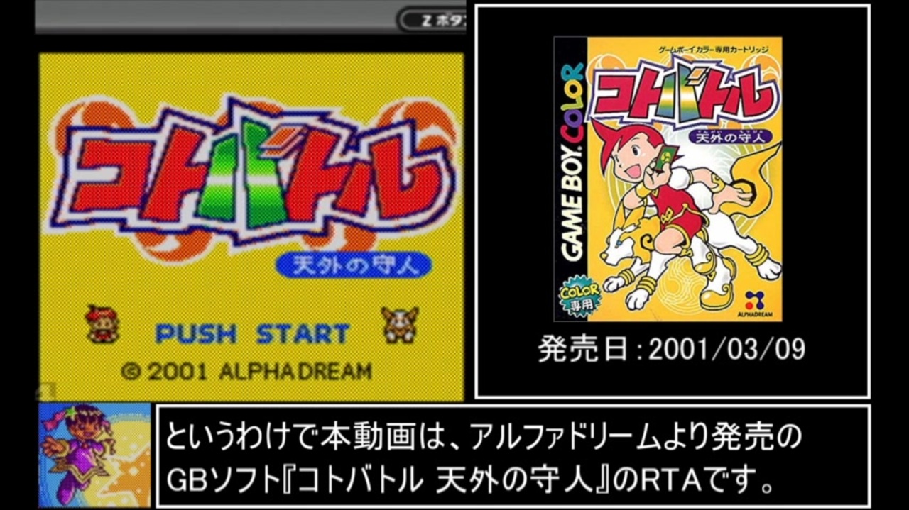 カラー専用ソフトは初投稿です。<br>ほぼ自前調査なので、色々ガバってる可能性大です。攻略本も無いからね、しょうがないね<br>スタート~テンガイのしろ<br>part2→<a href="https://www.nicovideo.jp/watch/sm36463987" class="watch">sm36463987</a><br><br>汚い要素無しver part1→<a href="https://youtu.be/jDgUwFIrPFk" target="_blank" rel="noopener nofollow">https://youtu.be/jDgUwFIrPFk</a><br>無編集版→<a href="https://youtu.be/Z0KklQl0VXA" target="_blank" rel="noopener nofollow">https://youtu.be/Z0KklQl0VXA</a><br>全カード、コンボ集→<a href="https://www.nicovideo.jp/watch/sm36292979" class="watch">sm36292979</a><br>他のpart1→<a href="https://www.nicovideo.jp/mylist/65998879" target="_blank" rel="noopener">mylist/65998879</a><br>本RTAのマイリスト→<a href="https://www.nicovideo.jp/mylist/67708809" target="_blank" rel="noopener">mylist/67708809</a><br><br>計測区間:「はじめから」選択~スタッフロール最後の「おしまい」表示まで<br>録画環境:ゲームキューブ+ゲームボーイプレーヤー+GV-USB2<br><br><span style="font-size: 10px;">わっぽん兄貴、</span><span style="color: #252525; font-size: 10px;">JJ10兄貴、四戸兄貴、Yusso兄貴、GUS兄貴、インファレンス兄貴、[エトセトーラ]兄貴、kuei兄貴、こあさ兄貴、月白兄貴、ゲスト兄貴、桂言葉兄貴、ジム兄貴、tab兄貴、白刹(ハク)兄貴、タケノサト兄貴、らいあ兄貴、koikekazuo兄貴、メカ沢さぶろー兄貴、ニャー兄貴、リブナニッカ+兄貴、イノシシ兄貴、ゆ~ま兄貴、日本最長距離ステークス兄貴、desi兄貴、kanan兄貴、sion10兄貴、ロウ兄貴、CV兄貴、141兄貴、蓬莱山輝夜の中の人兄貴、くらば兄貴、ベータドリーム兄貴、dokan兄貴、広告アリシャス!!</span>