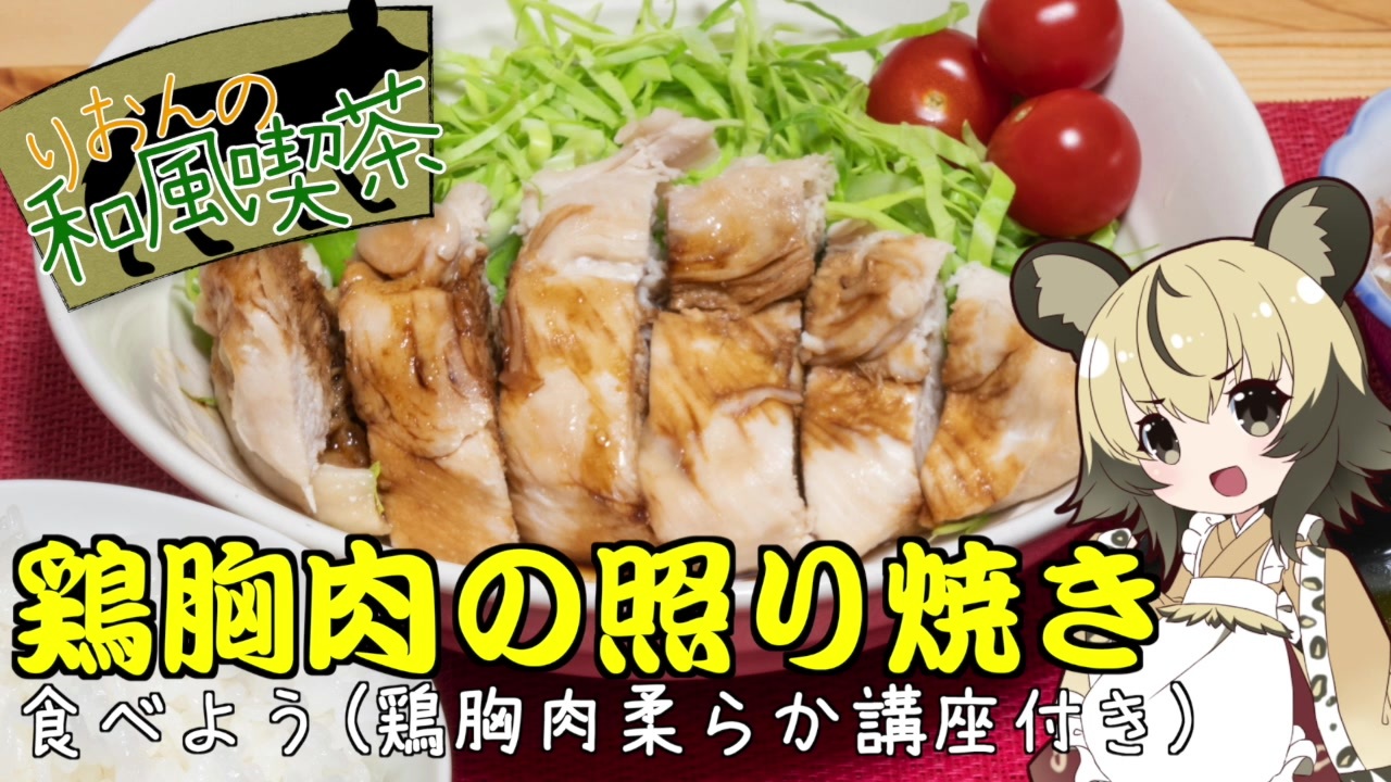 <span style="color: rgba(0, 0, 0, 0.87); font-size: 15px;">りおんの和風喫茶へようこそ<br>あまりお客さんが来なくてちょっと寂しい今日この頃です。<br><br>今回は安くてヘルシー高タンパク質な<br>「鶏胸肉の照り焼き」を作っていきます。<br><br>そして硬くなりがちな鶏胸肉を柔らかく調理する方法の<br>一つ目の方法を紹介していきます</span><br><br>前回:<a href="https://www.nicovideo.jp/watch/sm36395628" class="watch">sm36395628</a> 次回<br><br>前回広告ありがとうございました<br><span style="color: rgba(0, 0, 0, 0.87); font-size: 15px;">鯖缶さん</span><br />twitter:@lycaon_kitchen<br><br>りおんの和風喫茶:<a href="https://www.nicovideo.jp/series/77190" target="_blank" rel="noopener">series/77190</a><br>おつかれごはん:<a href="https://www.nicovideo.jp/series/155690" target="_blank" rel="noopener">series/155690</a><br>手作り和菓子でちょっとひとやすみしませんか?:<a href="https://www.nicovideo.jp/series/155691" target="_blank" rel="noopener">series/155691</a><br><br><span style="color: rgba(0, 0, 0, 0.87);">立ち絵:</span>星華 彩二魔 様<br><span style="color: rgba(0, 0, 0, 0.87);">イラスト:いらすとや、AWD kitchen<br>音源:DOVA-SYNDROME、ポケットサウンド<br>音声:VOICEROID2 </span>紲星あかり、東北イタコ + exVOICE