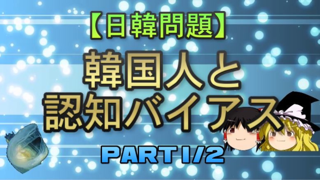 さて、本日はタイトルにもあるように韓国における認知バイアスに関しての内容となります。<br><br>関連記事<br>韓国人と認知バイアス<br><a href="https://ch.nicovideo.jp/article/ar1191730" target="_blank" rel="noopener">ar1191730</a><br><br>関連動画<br>【マスコミ問題】韓国問題をめぐるデタラメ報道 part2<br><a href="https://www.nicovideo.jp/watch/sm35493660" class="watch">sm35493660</a><br>【日韓問題】韓国人は記憶の改変をしているわけではない?<br><a href="https://www.nicovideo.jp/watch/sm35775418" class="watch">sm35775418</a><br>【日韓問題】韓国が日本人から嫌われる原因は何?前編<br><a href="https://www.nicovideo.jp/watch/sm31412401" class="watch">sm31412401</a><br>【日韓問題】新型コロナウイルスと韓国 part2/2<br><a href="https://www.nicovideo.jp/watch/sm36312171" class="watch">sm36312171</a><br><br>引用ソースと動画のテキストをブロマガ日韓問題(初心者向け)のほうへ掲載しています。<br><br>日韓問題(初心者向け)<br><a href="https://ch.nicovideo.jp/ooguchib" target="_blank" rel="noopener">ch.nicovideo.jp/ooguchib</a><br><br>暇つぶしにどうぞ<br><a href="http://ooguchib.blog.fc2.com/" target="_blank" rel="noopener nofollow">http://ooguchib.blog.fc2.com/</a> <br><br>twitter @ooguchib<br><a href="https://twitter.com/ooguchib" target="_blank" rel="noopener nofollow">https://twitter.com/ooguchib</a><br><br>今回のブロマガ記事<br><a href="https://ch.nicovideo.jp/article/ar1873129" target="_blank" rel="noopener">ar1873129</a><br><br>前 <a href="https://www.nicovideo.jp/watch/sm36440349" class="watch">sm36440349</a> <a href="https://www.nicovideo.jp/mylist/59069876" target="_blank" rel="noopener">mylist/59069876</a> 次回 <a href="https://www.nicovideo.jp/watch/sm36513785" class="watch">sm36513785</a><br><br>番外編マイリスト<br><a href="https://www.nicovideo.jp/mylist/62992608" target="_blank" rel="noopener">mylist/62992608</a><br><br>YouTube版<br><a href="https://youtu.be/sxeusP0ZBTk" target="_blank" rel="noopener nofollow">https://youtu.be/sxeusP0ZBTk</a>