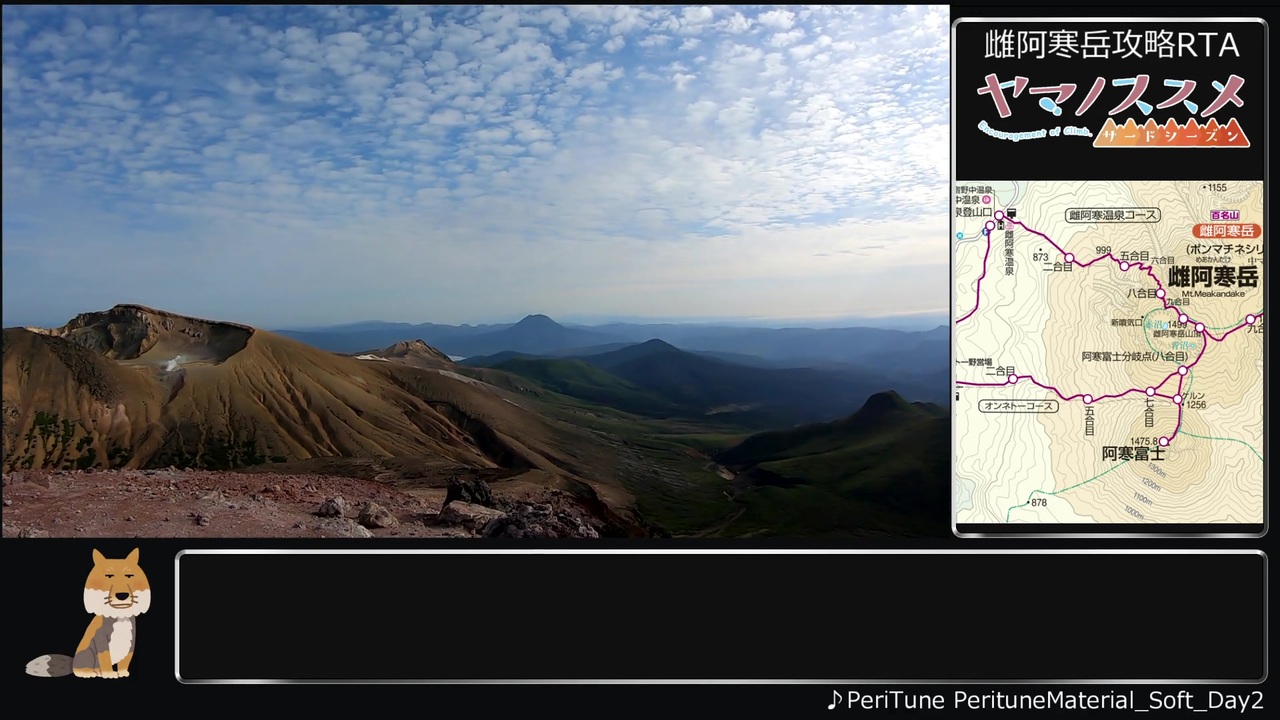 北海道の活火山は初投稿です。<br>登頂日:2019/09/29<br><br><span style="color: #000000; font-size: 14px;">今まで登った山リスト</span><br><span style="color: #006699; font-size: 14px;"><a href="https://www.nicovideo.jp/mylist/64046902" target="_blank" rel="noopener">mylist/64046902</a></span><br><br>紹介者一覧<br>====================<span style="color: #000000; font-size: 13px;">===================</span><br>エゾリス姉貴 ⇒ <a href="https://www.nicovideo.jp/series/99762" target="_blank" rel="noopener">series/99762</a><br>くま兄貴 ⇒ <a href="https://www.nicovideo.jp/series/93142" target="_blank" rel="noopener">series/93142</a><br>雷鳥兄貴 ⇒ <a href="https://www.nicovideo.jp/series/26966" target="_blank" rel="noopener">series/26966</a><br>二百三高地兄貴⇒ <a href="https://www.nicovideo.jp/series/101012" target="_blank" rel="noopener">series/101012</a><br>たら兄貴 <span style="color: #000000; font-size: 13px;">⇒</span> <a href="https://www.nicovideo.jp/series/16889" target="_blank" rel="noopener">series/16889</a><br>