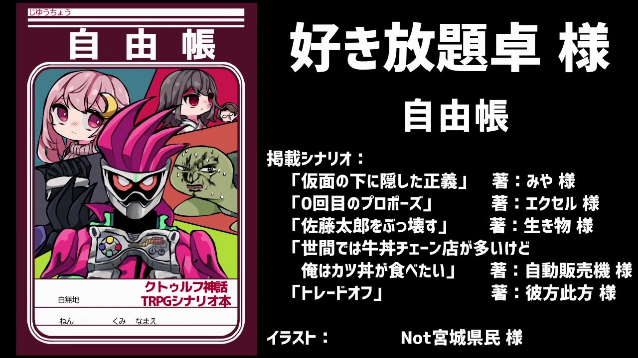 某所で行われたクトゥルフのセッションを動画化です。<br><br><strong>好き放題卓様発行「自由帳」 自動販売機 様作<br>『世間では牛丼チェーン店が多いけど俺はカツ丼が食べたい』のリプレイです。<br>上記シナリオのネタバレを含みます。ご注意ください。<br>(本動画で使用させて頂いた画像の一部は、Not宮城県民 様の制作物となります)</strong><br><br>Part2→<a href="https://www.nicovideo.jp/watch/sm36492953" class="watch">sm36492953</a><br><br>クトゥルフマイリスト→<a href="https://www.nicovideo.jp/mylist/61761401" target="_blank" rel="noopener">mylist/61761401</a><br>part1マイリスト→<a href="https://www.nicovideo.jp/mylist/61761407" target="_blank" rel="noopener">mylist/61761407</a>