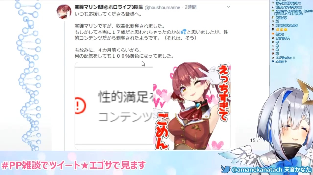 宝鐘マリンの収益化剥奪ツイートをモノマネで音読する天音かなた