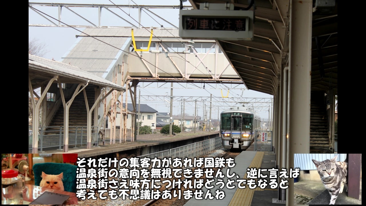 北陸本線に特急が新設されて以後、ダイヤ改正のたびに特急の争奪戦を繰り広げる大聖寺と動橋。両者の板挟みとなった国鉄はやむなく両方の駅に特急を停めざるを得ませんでした。<br>しかし、モータリゼーションの進行による交通事情の変化がその状況を覆し、国鉄は特急停車駅の一本化に動き出します。そして、大聖寺と動橋の間にあった小さな駅の参入で、事態は更に複雑化する事になるのです。<br><br><br><br><br><br><br><br>え?タイトルに「後編」って書いてなかったかって?やだなあ奥さん、後編はこっちですよ→<a href="https://www.nicovideo.jp/watch/sm36657780" class="watch">sm36657780</a><br /><span style="color: #000000; font-size: 14px;">迷航空会社列伝</span><span style="color: #006699; font-size: 14px;"><a href="https://www.nicovideo.jp/mylist/24098760" target="_blank" rel="noopener">mylist/24098760</a></span><span style="color: #000000; font-size: 14px;"> 迷列車北陸編</span><span style="color: #006699; font-size: 14px;"><a href="https://www.nicovideo.jp/mylist/19084652" target="_blank" rel="noopener">mylist/19084652</a> </span><span style="color: #000000; font-size: 14px;">東海道交通戦争</span><span style="color: #006699; font-size: 14px;"><a href="https://www.nicovideo.jp/mylist/57958388" target="_blank" rel="noopener">mylist/57958388</a></span><span style="color: #000000; font-size: 14px;"> 交通機関の栄枯盛衰 </span><a href="https://www.nicovideo.jp/mylist/66898301" target="_blank" rel="noopener">mylist/66898301</a><br><span style="color: #000000; font-size: 14px;">ブログ→</span><span style="color: #006699; font-size: 14px;"><a href="http://www.meihokuriku-alps.com" target="_blank" rel="noopener nofollow">http://www.meihokuriku-alps.com</a></span><br>note→<a href="https://note.com/meihokuriku" target="_blank" rel="noopener nofollow">https://note.com/meihokuriku</a><br><span style="color: #000000; font-size: 14px;">使用BGM<br>甘茶の音楽工房様 </span><span style="color: #006699; font-size: 14px;"><a href="http://amachamusic.chagasi.com/index.html" target="_blank" rel="noopener nofollow">http://amachamusic.chagasi.com/index.html</a></span><br><span style="color: #000000; font-size: 14px;">魔王魂様 </span><span style="color: #006699; font-size: 14px;"><a href="https://maoudamashii.jokersounds.com/list/bgm5.html" target="_blank" rel="noopener nofollow">https://maoudamashii.jokersounds.com/list/bgm5.html</a></span>