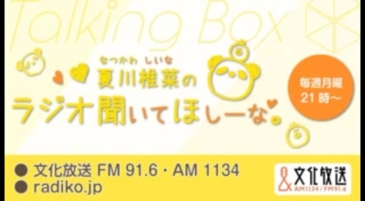 【提供】マギアレコード<br><a href="https://magireco.com/" target="_blank" rel="noopener nofollow">https://magireco.com/</a><br>【番組概要】<br>■タイトル MOMO・SORA・SHIINA Talking Box<br>■パーソナリティ 麻倉もも 雨宮天 夏川椎菜<br>■放送媒体 文化放送 (FM91.6MHz・AM1134kHz + radiko.jp)<br>■放送時間 毎週月曜日 21:00~21:30(2019年4月より)<br>■メールアドレス mss@joqr.net<br>『MOMO・SORA・SHIINA Talking Box』は、<br>3人が週替わりで一人しゃべりの冠番組をお届けしていく<br>30分間のスペシャルラジオプログラムです。<br>3人各々の個性や魅力が詰まった、<br>カラーの異なる三者三様の番組を週替わりにお送りしていきます。<br>それぞれ、一体どんな番組になるのかは、放送をお楽しみに♪<br>MOMO・SORA・SHIINA Talking Box公式Twitter:<a href="https://twitter.com/msstb_joqr" target="_blank" rel="noopener nofollow">https://twitter.com/msstb_joqr</a><br>タグ<br>#MOMO・SORA・SHIINA <br>#夏川椎菜 #聞いてほしーな<br><a href="https://www.nicovideo.jp/mylist/64990261" target="_blank" rel="noopener">mylist/64990261</a><br>※エンディング交通情報挿入のためカットしてます。<br><span style="color: #ff0000;"><strong>※4月より土曜26時からに放送時間変更。</strong></span><br>■ 毎週月曜日 21:00~21:30(~3/23)<br> ⇒ 毎週土曜日 26:00~26:30(4/4~)