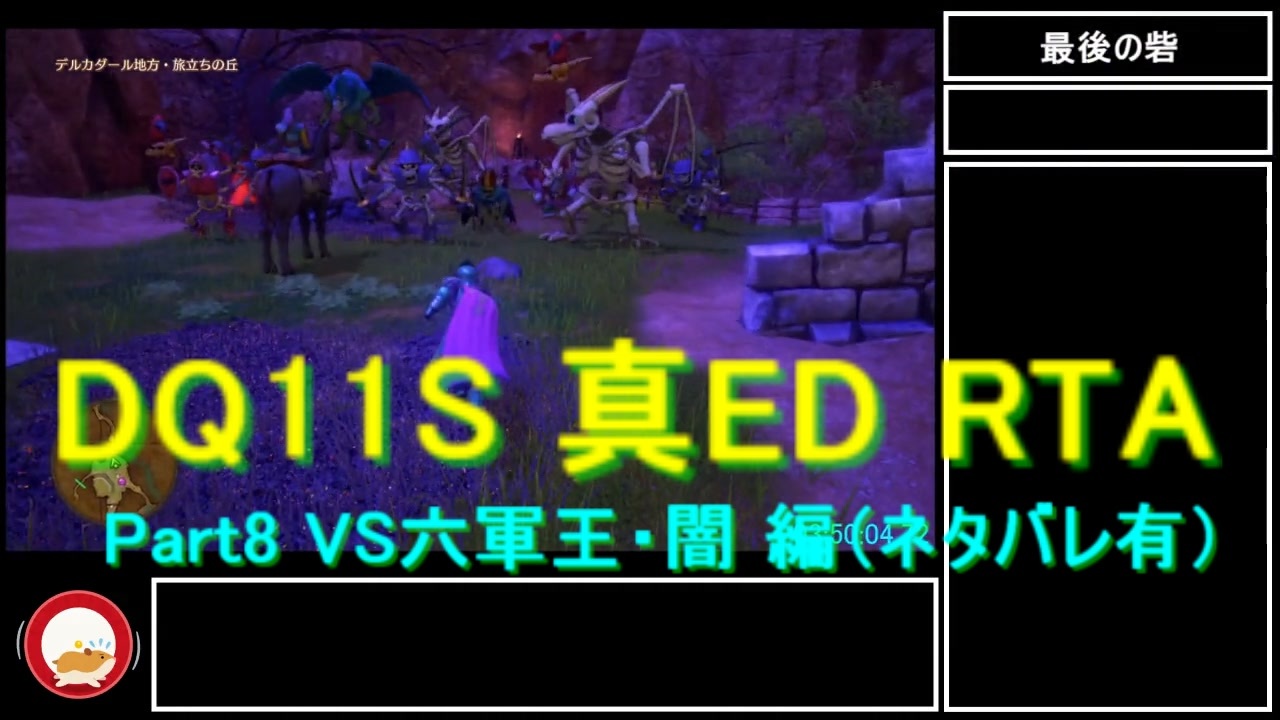 ネタバレ有り。「それでもかまわん!」となったらぜひご視聴ください。なおガバ (´・ω・)<br><br>世界崩壊後の物語<br>いきなり強敵、六軍王初戦<br><br><span style="font-size: 16px;"><strong>追記:(2021年3月)Steamで再走し、約2時間短縮しました(Part1はこちら)→<a href="https://www.nicovideo.jp/watch/sm38525630" class="watch">sm38525630</a></strong></span><br><br>Part7:<a href="https://www.nicovideo.jp/watch/sm36504132" class="watch">sm36504132</a>(世界崩壊前)<br>Part7.5:<a href="https://www.nicovideo.jp/watch/sm36526989" class="watch">sm36526989</a>(追加ストーリー)<br><br>Part9:<a href="https://www.nicovideo.jp/watch/sm36546589" class="watch">sm36546589</a><br>真EDマイリスト:<a href="https://www.nicovideo.jp/mylist/67575607" target="_blank" rel="noopener">mylist/67575607</a><br><br>【プレイ環境・レギュレーション】<br>・「冒険の書を作る」選択~「真ボスやっつけた」表示まで ※詳細はPart1<br>・「復活の呪文」「プレゼント受取」「2D切り替え」なし<br>・Switch・パッケージ版・手動コン使用<br>・配信禁止区間対策で、表ボス後画面を隠します<br><br />生放送コミュ:co4223870<br>Twitter:<a href="https://twitter.com/tushitottoko" target="_blank" rel="noopener nofollow">https://twitter.com/tushitottoko</a><br>Youtube:<a href="https://www.youtube.com/channel/UCQSR51Ct-JiGwsrlO27IH-g" target="_blank" rel="noopener nofollow">https://www.youtube.com/channel/UCQSR51Ct-JiGwsrlO27IH-g</a><br>チャート置き場→<a href="http://tushirta.livedoor.blog/" target="_blank" rel="noopener nofollow">http://tushirta.livedoor.blog/</a><br><br>【著作権】 DQ公式サイトより引用<br><br>この動画で利用している株式会社スクウェア・エニックスを代表とする共同著作者が権利を所有する著作物及びスギヤマ工房有限会社が権利を所有する楽曲の転載・配布は禁止いたします。<br><br>(C) ARMOR PROJECT/BIRD STUDIO/SQUARE ENIX All Rights Reserved.<br>(C) SUGIYAMA KOBO (P) SUGIYAMA KOBO
