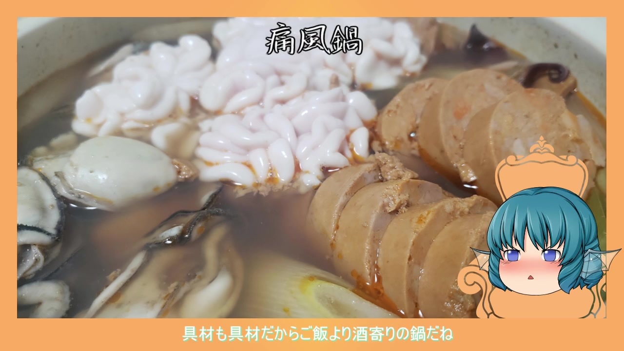 <span style="color: #000000;">「姫は料理を作るのを見ながら酒飲んで、小言言うだけです」</span><br><br>これが一品目の予定でした…<br><br>使用BGM :musmus様より「Unconventional Organ」<br><a href="http://musmus.main.jp/" target="_blank" rel="noopener nofollow">http://musmus.main.jp/</a><br><br>この動画にレシピは載ってないので→<br> 痛風鍋 by Aruby <a href="https://cookpad.com/recipe/6090337" target="_blank" rel="noopener nofollow">https://cookpad.com/recipe/6090337</a><br><br>前のお品→<a href="https://www.nicovideo.jp/watch/sm36316430" class="watch">sm36316430</a> 次のお品→<a href="https://www.nicovideo.jp/watch/sm36852152" class="watch">sm36852152</a><br>「イベント企画」特別なお品→<a href="https://www.nicovideo.jp/watch/sm36687019" class="watch">sm36687019</a><br><br><br>鱈のこと もっと知りたいあなたへ→<a href="https://www.nicovideo.jp/watch/sm36269283" class="watch">sm36269283</a><br><span style="color: #000000;">鮟鱇のこと もっと知りたいあなたへ→</span><a href="https://www.nicovideo.jp/watch/sm36478541" class="watch">sm36478541</a><br>牡蠣のこと<span style="color: #000000;"> もっと知りたいあなたへ→なるはや</span><br><br>普段→<br><span style="color: #000000; font-size: 14px;">「ゆっくりわかさぎ姫が教える魚マイリスト」</span><br><span style="color: #006699; font-size: 14px;"><a href="https://www.nicovideo.jp/mylist/64114531" target="_blank" rel="noopener">mylist/64114531</a></span><br><br><span style="font-size: 14px;">twitter⇒【</span><span style="color: #000000;"> <a href="https://twitter.com/aruby151?s=09" target="_blank" rel="noopener nofollow">https://twitter.com/aruby151?s=09</a></span><span style="font-size: 14px;">】</span><br>進行状況を稀に伝えたり、趣味アカとして使ってみたりしてます<br><br>サークル闇市倶楽部で活動なう!覗いてってー<br>わかさぎ姫シリーズ公式ラバストも販売中!<br><a href="https://yamiiti.booth.pm/" target="_blank" rel="noopener nofollow">https://yamiiti.booth.pm/</a>