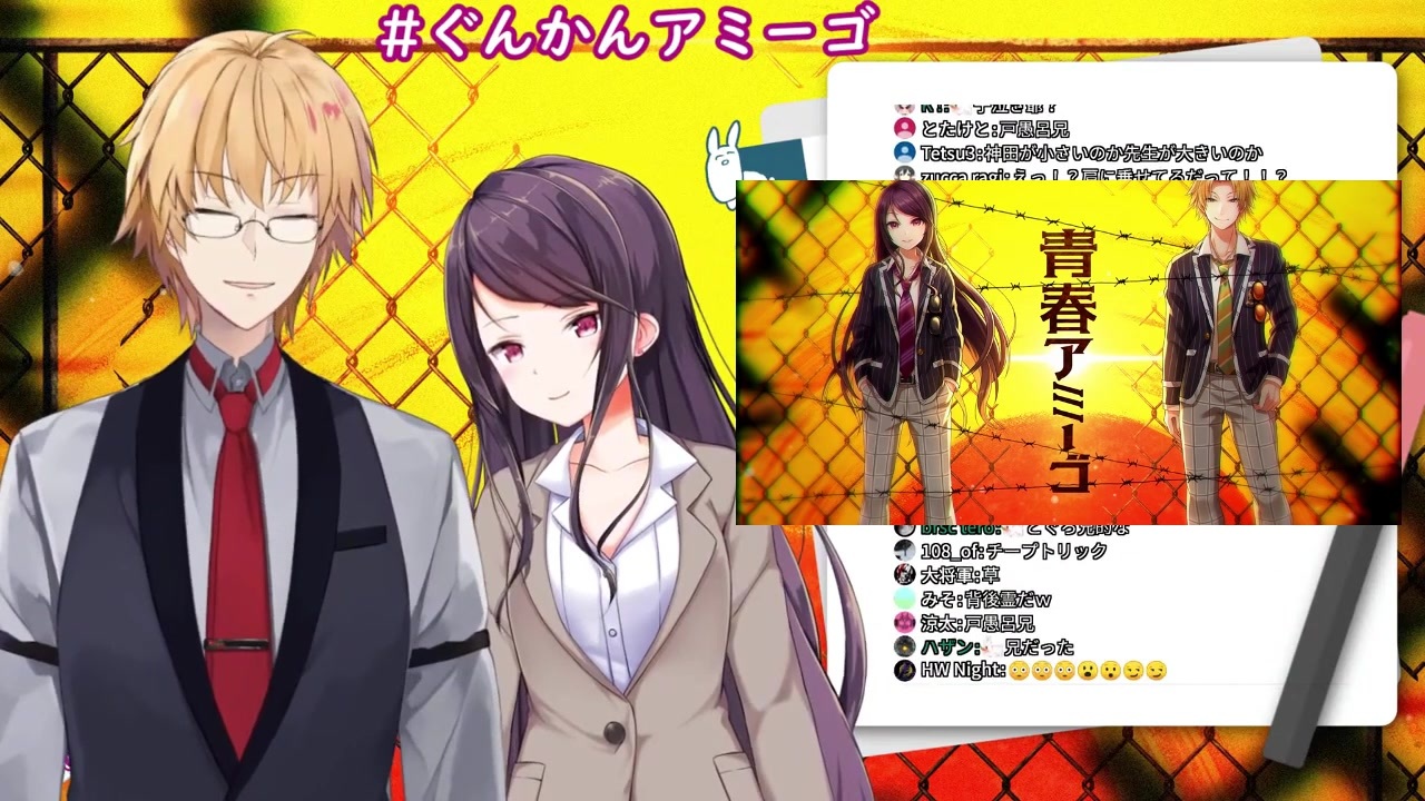 【歌ってみた】青春アミーゴ【ぐんかん/にじさんじ】<br><a href="https://www.youtube.com/watch?v=FAdUv5BL8FY" target="_blank" rel="noopener nofollow">https://www.youtube.com/watch?v=FAdUv5BL8FY</a><br>こちらの歌ってみたがよかったので投稿後の雑談枠とそこで触れたARKでの出来事をまとめてみました。<br><br><リンク><br>【#ぐんかんアミーゴ】歌ってみた裏話的な何かとかヒミツのあれとかそれとか。【雑談】<br><a href="https://www.youtube.com/watch?v=J940cPZtUZY" target="_blank" rel="noopener nofollow">https://www.youtube.com/watch?v=J940cPZtUZY</a><br><br>郡道美玲のチャンネルとTwitter<br><a href="https://www.youtube.com/channel/UCeShTCVgZyq2lsBW9QwIJcw" target="_blank" rel="noopener nofollow">https://www.youtube.com/channel/UCeShTCVgZyq2lsBW9QwIJcw</a><br><a href="https://twitter.com/g9v9g_mirei" target="_blank" rel="noopener nofollow">https://twitter.com/g9v9g_mirei</a><br>神田笑一のチャンネルとTwitter<br><a href="https://www.youtube.com/channel/UCWz0CSYCxf4MhRKPDm220AQ" target="_blank" rel="noopener nofollow">https://www.youtube.com/channel/UCWz0CSYCxf4MhRKPDm220AQ</a><br><a href="https://twitter.com/Kanda_Shoichi" target="_blank" rel="noopener nofollow">https://twitter.com/Kanda_Shoichi</a><br>シェリン・バーガンディのチャンネルとTwitter<br><a href="https://www.youtube.com/channel/UCHBhnG2G-qN0JrrWmMO2FTA" target="_blank" rel="noopener nofollow">https://www.youtube.com/channel/UCHBhnG2G-qN0JrrWmMO2FTA</a><br><a href="https://twitter.com/ShellinBurgundy" target="_blank" rel="noopener nofollow">https://twitter.com/ShellinBurgundy</a><br><br>※本人達がお互いを話題にしていない時などは無闇に名前を出さないこと。気をつけよう。<br><br>今まで作ったの→<a href="https://www.nicovideo.jp/mylist/67673799" target="_blank" rel="noopener">mylist/67673799</a>