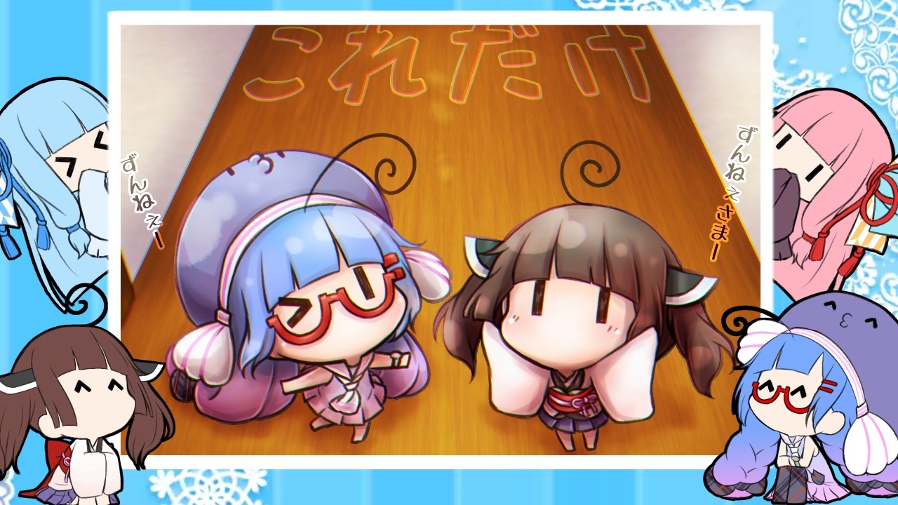 <span style="color: #ff0000; font-size: 24px;"><strong>立ち絵の作者空どうふ様より支援絵をいただきましたぁぁぁぁぁ!!!!!!↓奇跡!!↓<br><a href="https://seiga.nicovideo.jp/seiga/im10234877" target="_blank" rel="noopener">im10234877</a></strong></span><br><br><a href="https://www.nicovideo.jp/watch/sm36498561" class="watch">sm36498561</a><span style="color: #262626; font-size: 14px;">←前:次→</span><a href="https://www.nicovideo.jp/watch/sm36616532" class="watch">sm36616532</a><br><br><span style="color: #000000; font-size: 14px;">一つ目:</span><span style="color: #006699; font-size: 14px;"><a href="https://www.nicovideo.jp/watch/sm36288363" class="watch">sm36288363</a></span><br><span style="color: #000000; font-size: 14px;">このシリーズ </span><span style="color: #006699; font-size: 14px;"><a href="https://www.nicovideo.jp/mylist/67571789" target="_blank" rel="noopener">mylist/67571789</a></span><br><br><strong>▼立ち絵</strong><br><span style="font-size: 16px;"><strong>めっちゃめんこい立ち絵<br>ウナきり琴葉姉妹:空どうふ 様<br>ずんちゃん:</strong></span><span style="color: #000000; font-size: 16px;"><strong>Noname 様</strong></span><br><br><strong>ウナちゃん→<a href="https://seiga.nicovideo.jp/seiga/im8670690" target="_blank" rel="noopener">im8670690</a><br>きりたん→<a href="https://seiga.nicovideo.jp/seiga/im8392539" target="_blank" rel="noopener">im8392539</a></strong><br><span style="color: #000000;"><strong>琴葉姉妹→</strong></span><span style="color: #006699;"><strong><a href="https://seiga.nicovideo.jp/seiga/im10029530" target="_blank" rel="noopener">im10029530</a></strong></span><br><span style="color: #000000;"><strong>ずん子さん→</strong></span><span style="color: #006699;"><strong><a href="https://seiga.nicovideo.jp/seiga/im8214804" target="_blank" rel="noopener">im8214804</a></strong></span><br><span style="color: #262626; font-size: 10px;">※動画内のウナきりと琴葉姉妹の履物のみエ鳥が加筆させて頂きました</span><br /><br>劇場part1まとめ:<a href="https://www.nicovideo.jp/mylist/68483257" target="_blank" rel="noopener">mylist/68483257</a><br>X:<a href="https://twitter.com/etoritoru" target="_blank" rel="noopener nofollow">https://twitter.com/etoritoru</a>