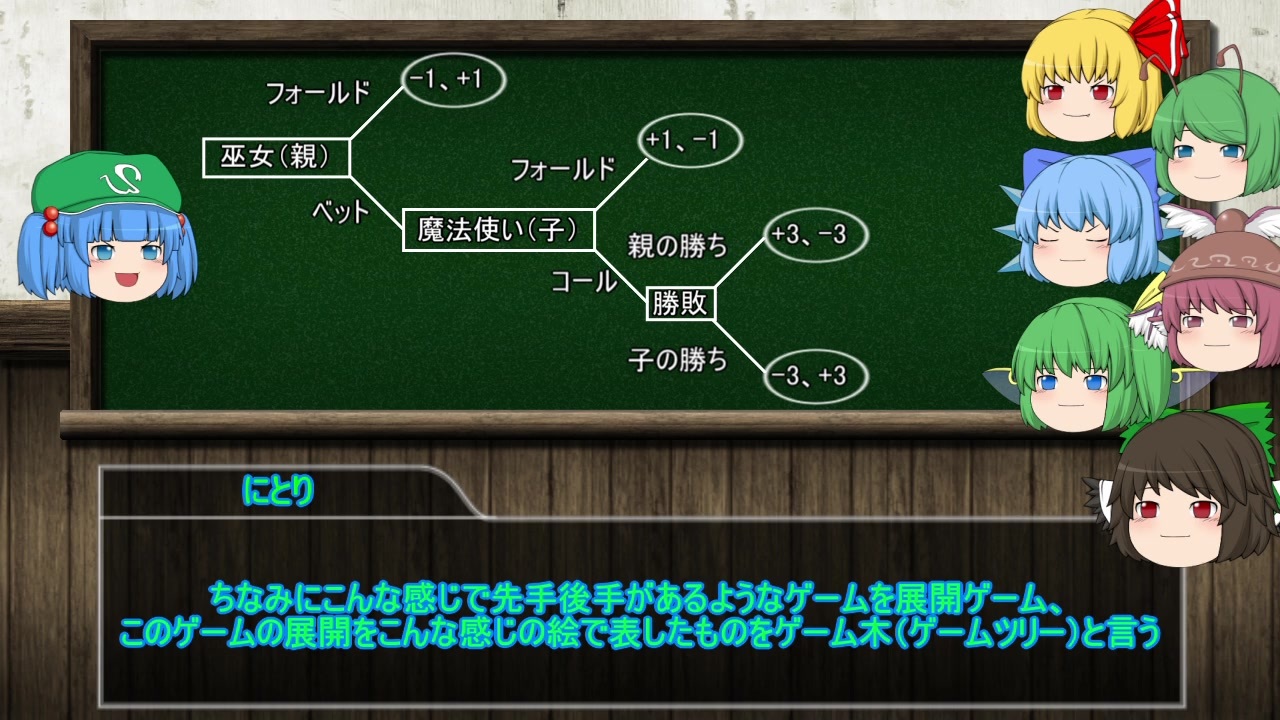 あけましておめでとうございます(錯乱)。<br> 資格試験やら仕事やらで時間がつぶれてしまい、前回の動画投稿から約1年も経ってしまいました。やっぱり数学の解説って難しいね。次は生物学かコンピュータサイエンスか…。<br><br>【動画情報】<br> この動画は、ゲーム理論の初歩であるミニマックス法と囚人のジレンマ(ナッシュ均衡)の説明を行うものですが、細かい用語の説明(ゲームの表現形式や解の概念)にまで手が回っていません。ご了承ください。<br><br>(追記)<br> ゲームの設定が一部おかしかったので動画を修正しました。広告・コメント・視聴して頂いた方々に深くお詫び申し上げます。<br><br>前回→<span style="color: #006699;"><a href="https://www.nicovideo.jp/watch/sm35047155" class="watch">sm35047155</a></span><br>次回→コロナが世界的に収束するまでには…。<br>マイリス→<span style="color: #006699;"><a href="https://www.nicovideo.jp/mylist/58812636" target="_blank" rel="noopener">mylist/58812636</a></span><br><br>動画投稿並みのペースでつぶやかないツイッター→<span style="color: #006699;"><a href="https://twitter.com/Sand_Bag_nico" target="_blank" rel="noopener nofollow">https://twitter.com/Sand_Bag_nico</a></span><br><br>