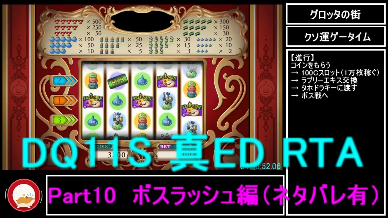 ネタバレ有り。「それでもかまわん!」となったらぜひご視聴ください。なおガバ (´・ω・)<br><br>ボスラッシュ編。やっぱドラクエはこうじゃなくちゃね!<br><br>ボスのHPも増えてきたので、HP表示等してみた。<br>推定値なので、だいたいの目安にどうぞ。プレイ中の計算は極めて難しい…<br><br><span style="font-size: 16px;"><strong>追記:(2021年3月)Steamで再走し、約2時間短縮しました(Part1はこちら)→<a href="https://www.nicovideo.jp/watch/sm38525630" class="watch">sm38525630</a></strong></span><br><br>Part9:<a href="https://www.nicovideo.jp/watch/sm36546589" class="watch">sm36546589</a><br>Part11:<a href="https://www.nicovideo.jp/watch/sm36615465" class="watch">sm36615465</a><br><br>真EDマイリスト:<a href="https://www.nicovideo.jp/mylist/67575607" target="_blank" rel="noopener">mylist/67575607</a><br><br>【プレイ環境・レギュレーション】<br>・「冒険の書を作る」選択~「真ボスやっつけた」表示まで ※詳細はPart1<br>・「復活の呪文」「プレゼント受取」「2D切り替え」なし<br>・Switch・パッケージ版・手動コン使用<br>・配信禁止区間対策で、表ボス後画面を隠します<br><br><br />生放送コミュ:co4223870<br>Twitter:<a href="https://twitter.com/tushitottoko" target="_blank" rel="noopener nofollow">https://twitter.com/tushitottoko</a><br>Youtube:<a href="https://www.youtube.com/channel/UCQSR51Ct-JiGwsrlO27IH-g" target="_blank" rel="noopener nofollow">https://www.youtube.com/channel/UCQSR51Ct-JiGwsrlO27IH-g</a><br>チャート置き場→<a href="http://tushirta.livedoor.blog/" target="_blank" rel="noopener nofollow">http://tushirta.livedoor.blog/</a><br><br>【著作権】 DQ公式サイトより引用<br><br>この動画で利用している株式会社スクウェア・エニックスを代表とする共同著作者が権利を所有する著作物及びスギヤマ工房有限会社が権利を所有する楽曲の転載・配布は禁止いたします。<br><br>(C) ARMOR PROJECT/BIRD STUDIO/SQUARE ENIX All Rights Reserved.<br>(C) SUGIYAMA KOBO (P) SUGIYAMA KOBO