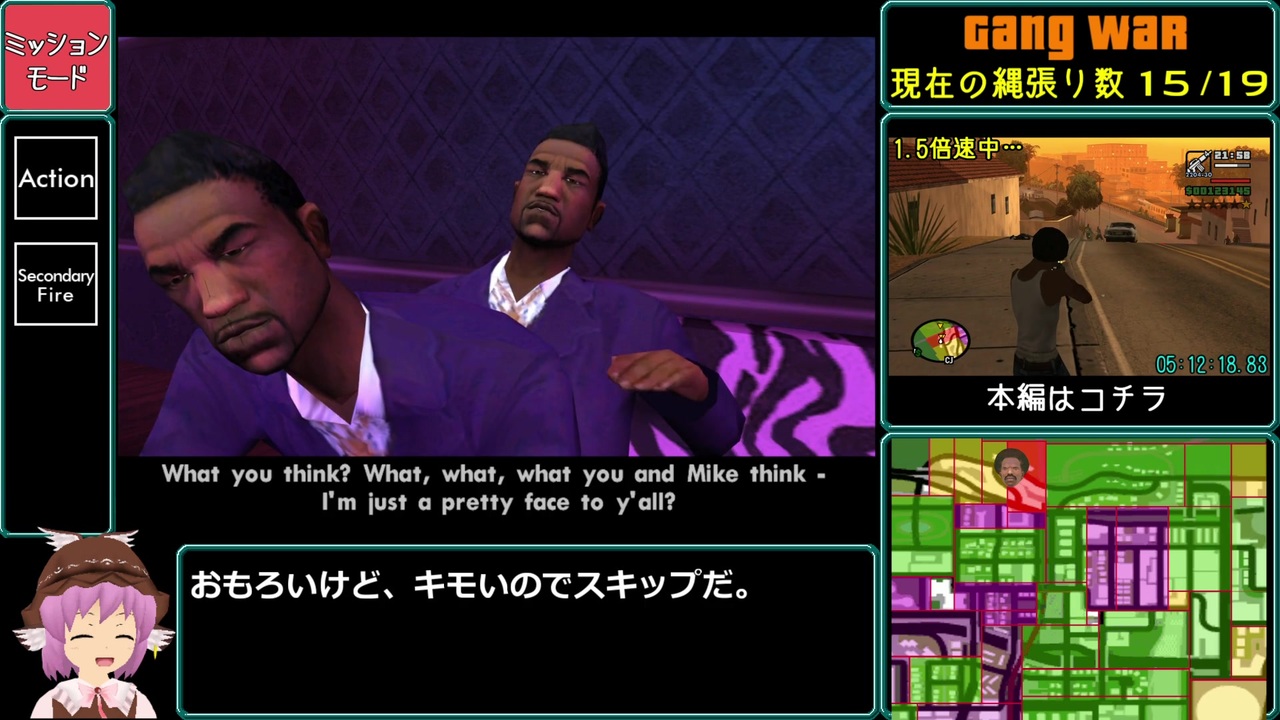 こいついつも謝ってんな<br><br>Grove 4 Life ~ Riot まで<br><br><span style="color: #000000; font-size: 14px;">前→ </span><a href="https://www.nicovideo.jp/watch/sm36546983" class="watch">sm36546983</a><br><span style="color: #000000; font-size: 14px;">次→ </span><a href="https://www.nicovideo.jp/watch/sm36615319" class="watch">sm36615319</a><br><br><span style="color: #006699; font-size: 14px;"><a href="https://www.nicovideo.jp/mylist/66485665" target="_blank" rel="noopener">mylist/66485665</a></span><br><br>せっかち兄貴用<br><span style="color: #333333; font-size: 16px;"><a href="#" class="seekTime" data-seekTime="00:05" onclick="seekNicoPlayer('#00:05'); return false;">#00:05</a> Grove 4 Life<br><a href="#" class="seekTime" data-seekTime="11:48" onclick="seekNicoPlayer('#11:48'); return false;">#11:48</a> Cut Throat Business<br><a href="#" class="seekTime" data-seekTime="17:15" onclick="seekNicoPlayer('#17:15'); return false;">#17:15</a> Riot</span><br><br>右下枠の動画(無編集、音ズレあるかも)→ <a href="https://youtu.be/E1nTVli6zNk" target="_blank" rel="noopener nofollow">https://youtu.be/E1nTVli6zNk</a><br><br><br />-------------------------------------------------------------------<br>カテゴリーは No Major Glitches(特定のバグ使用不可)<br>基本はパッド操作ですが一部マウス使用<br><strong>認められていないツール(Joy to Key)使用のため参考記録です</strong>