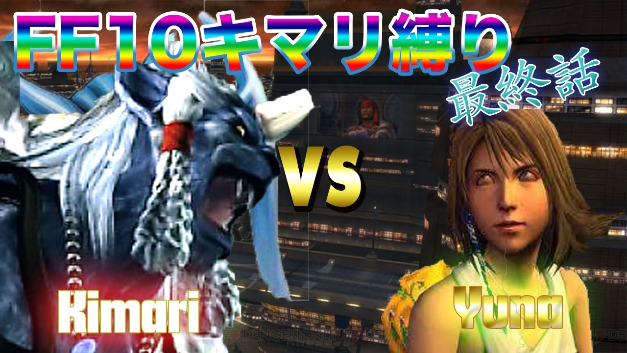Copyright (C) 2001, 2003, 2019 SQUARE ENIX CO., LTD. All Rights Reserved.<br>縛り項目3人攻略スフィア無し&キマリ縛り(なるべく)<br>1調合の禁止・2召喚の禁止・3石ガード禁止<br>スフィア使用の 「使う」消費10倍<br>アビリティ使用回数=残り0回<br>これでキマリの物語は終わりです<br>前回⇒<a href="https://www.nicovideo.jp/watch/sm36507686" class="watch">sm36507686</a><br>次回⇒再走 FF7<br><span style="font-size: 24px;"><strong>FF7体験版 クラウドマテリア縛り⇒<a href="https://www.nicovideo.jp/watch/sm36485210" class="watch">sm36485210</a></strong></span><br><span style="color: #ff0000; font-size: 24px;">youtubeアカウント作りました<br><a href="https://www.youtube.com/channel/UCjdaDoUkevvX17CYzlFys_Q" target="_blank" rel="noopener nofollow">https://www.youtube.com/channel/UCjdaDoUkevvX17CYzlFys_Q</a></span><br>FF10⇒<a href="https://www.nicovideo.jp/mylist/47887983" target="_blank" rel="noopener">mylist/47887983</a> <br><span style="color: #00ffff; font-size: 16px;">生放送にてクラウド縛りR始めました(現在レノ攻略中)⇒co3029417</span><br><span style="font-size: 18px;"><strong>ツブヤイター 動画更新情報してるお!<br><a href="https://twitter.com/dhuerunahito" target="_blank" rel="noopener nofollow">https://twitter.com/dhuerunahito</a></strong></span><br>