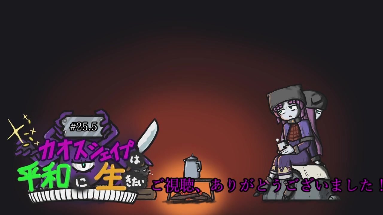 <span style="color: #ff00ff; font-size: 18px;"><strong>#23~#24のコメント返し回です!</strong></span><br><br>今月から少し忙しくなるため、投稿が更に不定期になりそうです。<br>遅くとも隔週で投稿したいと考えています、お待ちくだせぇ!<br><br><span style="color: #ff9900;"><strong>追記(2020/04/03.20:39)<br>05:51で紹介させていただいた動画シリーズのpart1リンクを貼らせて貰います。<br>先生方!お許しください!!</strong></span><br><span style="color: #ff00ff;"><strong>やるお!:</strong></span><a href="https://www.nicovideo.jp/watch/sm11369337" class="watch">sm11369337</a><br><span style="color: #ff00ff;">【=・ω・=】:</span><a href="https://www.nicovideo.jp/watch/sm18946983" class="watch">sm18946983</a><br><br><span style="color: #ff0000;"><strong>前回→</strong></span><a href="https://www.nicovideo.jp/watch/sm36568624" class="watch">sm36568624</a><span style="color: #ff0000;"><strong> </strong></span><span style="color: #0000ff;"><strong>次回→</strong></span><a href="https://www.nicovideo.jp/watch/sm36665917" class="watch">sm36665917</a><br><span style="color: #00ffff;"><strong>#01→</strong></span><a href="https://www.nicovideo.jp/watch/sm35254850" class="watch">sm35254850</a> <span style="color: #ff00ff;"><strong>カオスシェイプは平和に生きたいのマイリスト→</strong></span><a href="https://www.nicovideo.jp/mylist/65679530" target="_blank" rel="noopener">mylist/65679530</a><br><span style="color: #00ff00;">Pixiv</span>→<a href="https://www.pixiv.net/member.php?id=20356595" target="_blank" rel="noopener nofollow">https://www.pixiv.net/member.php?id=20356595</a>