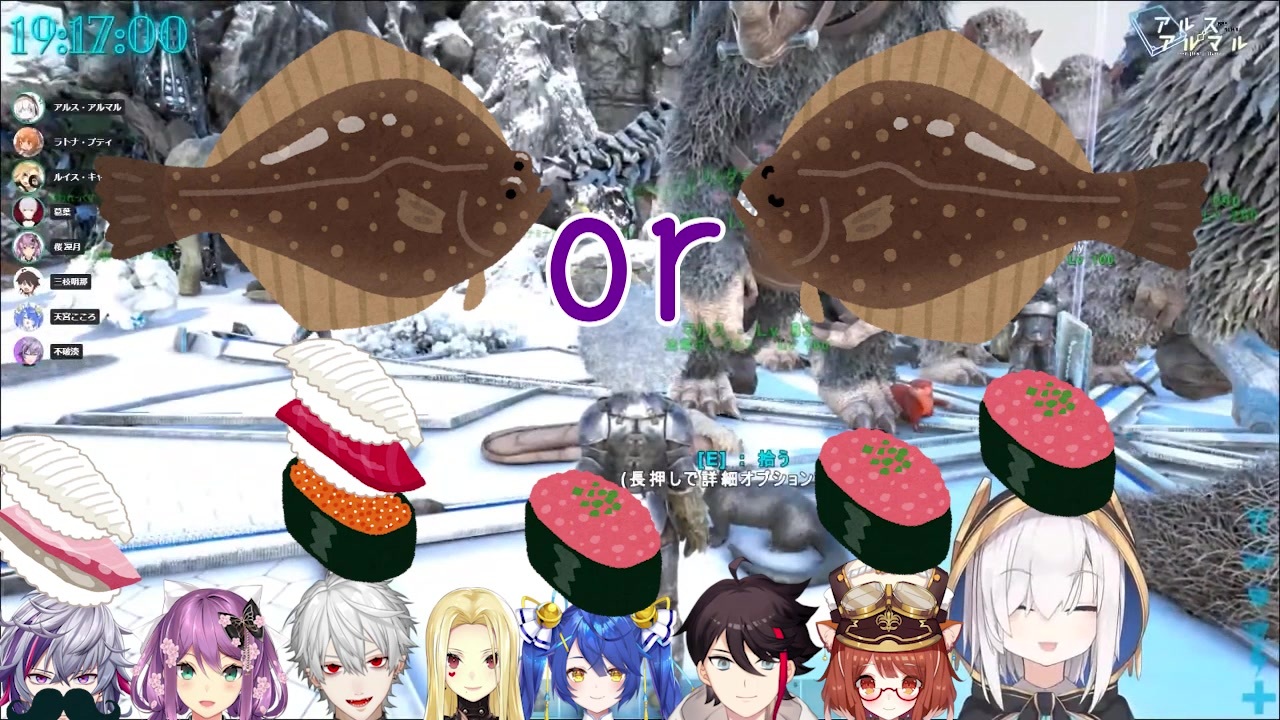 <span style="color: rgba(0, 0, 0, 0.87); font-size: 15px;">AxFの空気良い...</span><br>追記 <a href="#" class="seekTime" data-seekTime="00:25" onclick="seekNicoPlayer('#00:25'); return false;">#00:25</a> 間違えましたごめんなさい。<br><span style="color: rgba(0, 0, 0, 0.87); font-size: 15px;">本編→ <a href="https://www.youtube.com/watch?v=kgy5SecJsk0" target="_blank" rel="noopener nofollow">https://www.youtube.com/watch?v=kgy5SecJsk0</a><br>敬称略<br>ラトナ・プティ<br>【youtube】→ <a href="https://www.youtube.com/channel/UCIG9rDtgR45VCZmYnd-4DUw" target="_blank" rel="noopener nofollow">https://www.youtube.com/channel/UCIG9rDtgR45VCZmYnd-4DUw</a><br>【twitter】→ <a href="https://twitter.com/ratna_petit" target="_blank" rel="noopener nofollow">https://twitter.com/ratna_petit</a><br>葛葉<br>【youtube】→ <a href="https://www.youtube.com/channel/UCSFCh5NL4qXrAy9u-u2lX3g" target="_blank" rel="noopener nofollow">https://www.youtube.com/channel/UCSFCh5NL4qXrAy9u-u2lX3g</a><br>【twitter】→ <a href="https://twitter.com/Vamp_Kuzu" target="_blank" rel="noopener nofollow">https://twitter.com/Vamp_Kuzu</a><br>不破湊<br>【youtube】→ <a href="https://www.youtube.com/channel/UC6wvdADTJ88OfIbJYIpAaDA" target="_blank" rel="noopener nofollow">https://www.youtube.com/channel/UC6wvdADTJ88OfIbJYIpAaDA</a><br>【twitter】→ <a href="https://twitter.com/fuwa_minato" target="_blank" rel="noopener nofollow">https://twitter.com/fuwa_minato</a><br>三枝明那<br>【youtube】→ <a href="https://www.youtube.com/channel/UCNW1Ex0r6HsWRD4LCtPwvoQ" target="_blank" rel="noopener nofollow">https://www.youtube.com/channel/UCNW1Ex0r6HsWRD4LCtPwvoQ</a><br>【twitter】→ <a href="https://twitter.com/333akina" target="_blank" rel="noopener nofollow">https://twitter.com/333akina</a><br>アルス・アルマル<br>【YouTube】→ <a href="https://bit.ly/3bnNUtD" target="_blank" rel="noopener nofollow">https://bit.ly/3bnNUtD</a><br>【Twitter】→ <a href="https://twitter.com/ars_almal" target="_blank" rel="noopener nofollow">https://twitter.com/ars_almal</a><br>天宮こころ<br>【youtube】→ <a href="https://www.youtube.com/channel/UCkIimWZ9gBJRamKF0rmPU8w" target="_blank" rel="noopener nofollow">https://www.youtube.com/channel/UCkIimWZ9gBJRamKF0rmPU8w</a><br>【twitter】→ <a href="https://twitter.com/amamiya_kokoro" target="_blank" rel="noopener nofollow">https://twitter.com/amamiya_kokoro</a><br>ルイス・キャミー<br>【youtube】→ <a href="https://www.youtube.com/channel/UCb6ObE-XGCctO3WrjRZC-cw" target="_blank" rel="noopener nofollow">https://www.youtube.com/channel/UCb6ObE-XGCctO3WrjRZC-cw</a><br>【twitter】→ <a href="https://twitter.com/Luis_Cammy" target="_blank" rel="noopener nofollow">https://twitter.com/Luis_Cammy</a><br>桜 凛月<br>【youtube】→<a href="https://www.youtube.com/channel/UCfQVs_KuXeNAlGa3fb8rlnQ" target="_blank" rel="noopener nofollow">https://www.youtube.com/channel/UCfQVs_KuXeNAlGa3fb8rlnQ</a><br>【twitter】→ <a href="https://twitter.com/SAKURA_RITSUKI" target="_blank" rel="noopener nofollow">https://twitter.com/SAKURA_RITSUKI</a></span>