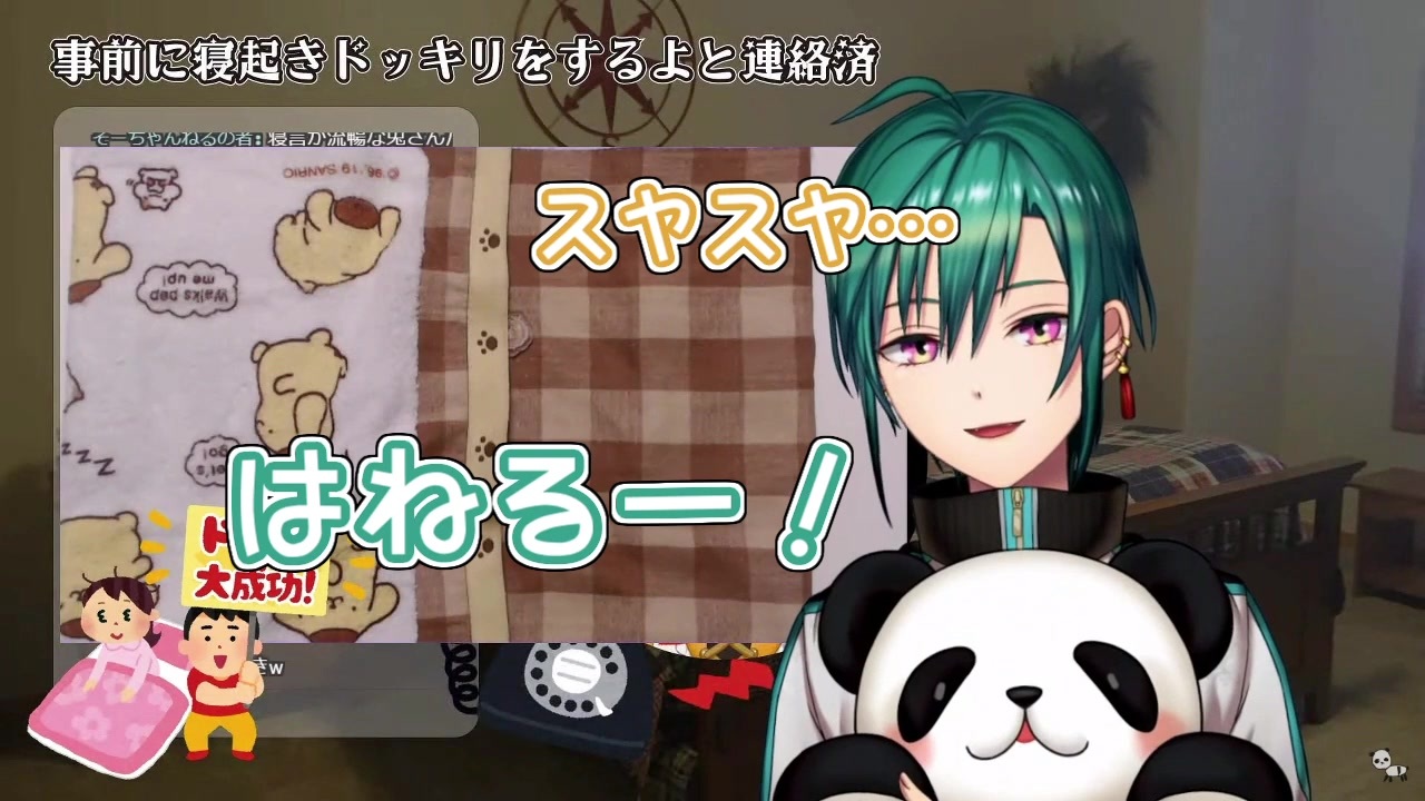●元配信<br>【#Vtuber寝起き】寝起きドッキリ!を突然仕掛けるので待機してもらう企画【にじさんじ/緑仙】<br><a href="https://youtu.be/-l-sSJZ0ehE?t=570" target="_blank" rel="noopener nofollow">https://youtu.be/-l-sSJZ0ehE?t=570</a><br><br>●チャンネル<br>緑仙<br><a href="https://www.youtube.com/channel/UCt5-0i4AVHXaWJrL8Wql3mw" target="_blank" rel="noopener nofollow">https://www.youtube.com/channel/UCt5-0i4AVHXaWJrL8Wql3mw</a><br><br>因幡はねる<br><a href="https://www.youtube.com/channel/UC0Owc36U9lOyi9Gx9Ic-4qg" target="_blank" rel="noopener nofollow">https://www.youtube.com/channel/UC0Owc36U9lOyi9Gx9Ic-4qg</a><br><br>健屋花那<br><a href="https://www.youtube.com/channel/UC8C1LLhBhf_E2IBPLSDJXlQ" target="_blank" rel="noopener nofollow">https://www.youtube.com/channel/UC8C1LLhBhf_E2IBPLSDJXlQ</a>