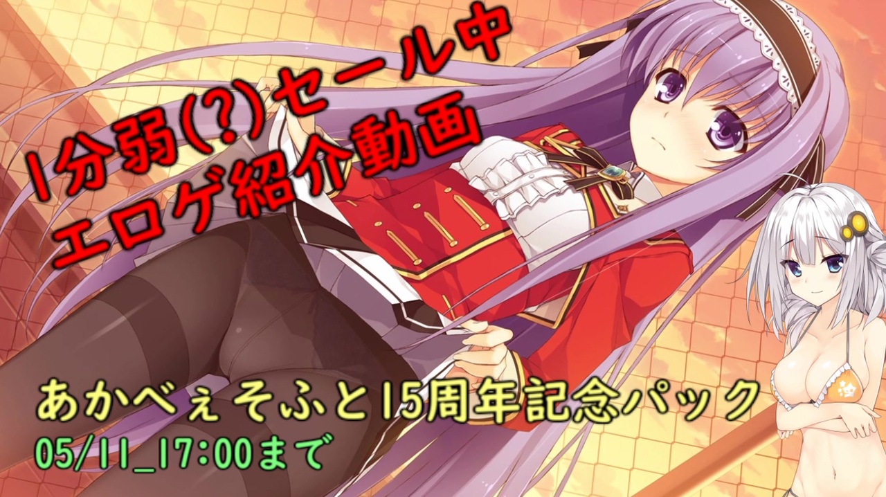 今回は1分弱レギュレーションを違反していますが…まぁええやろ<br><br><span style="color: #000000; font-size: 14px;">◆</span><span style="color: #000000; font-size: 13px;">あかりちゃん動画まとめ </span><span style="color: #006699; font-size: 13px;"><a href="https://www.nicovideo.jp/mylist/66002835" target="_blank" rel="noopener">mylist/66002835</a></span><br>前回:<a href="https://www.nicovideo.jp/watch/sm36588286" class="watch">sm36588286</a><br><span style="color: #000000; font-size: 14px;">次回:次も多分作る!</span><br /><span style="font-size: 13px;">◆ おすすめエロゲ紹介 </span><br><a href="https://www.nicovideo.jp/mylist/61896517" target="_blank" rel="noopener">mylist/61896517</a> 1回目:<a href="https://www.nicovideo.jp/watch/sm33153940" class="watch">sm33153940</a><br><span style="font-size: 13px;">◆ </span><span style="font-size: 14px;">エロゲ声優別キャラ紹介</span><br><a href="https://www.nicovideo.jp/mylist/63660468" target="_blank" rel="noopener">mylist/63660468</a><span style="font-size: 14px;"> 1回目:<a href="https://www.nicovideo.jp/watch/sm34052063" class="watch">sm34052063</a></span><br><span style="font-size: 13px;">◆ </span><span style="font-size: 14px;">エロゲ原画家紹介<br><a href="https://www.nicovideo.jp/mylist/65426693" target="_blank" rel="noopener">mylist/65426693</a> 1回目:</span><a href="https://www.nicovideo.jp/watch/sm35063008" class="watch">sm35063008</a><br><span style="font-size: 13px;">◆ ボイスロイド動画<br><a href="https://www.nicovideo.jp/mylist/66002835" target="_blank" rel="noopener">mylist/66002835</a> 1回目:</span><a href="https://www.nicovideo.jp/watch/sm35662230" class="watch">sm35662230</a><br><span style="font-size: 13px;">◆ </span>何かあった時用のツイッター<br>Twitter→ <a href="https://twitter.com/magunamu06060" target="_blank" rel="noopener nofollow">https://twitter.com/magunamu06060</a> (@magunamu06060)