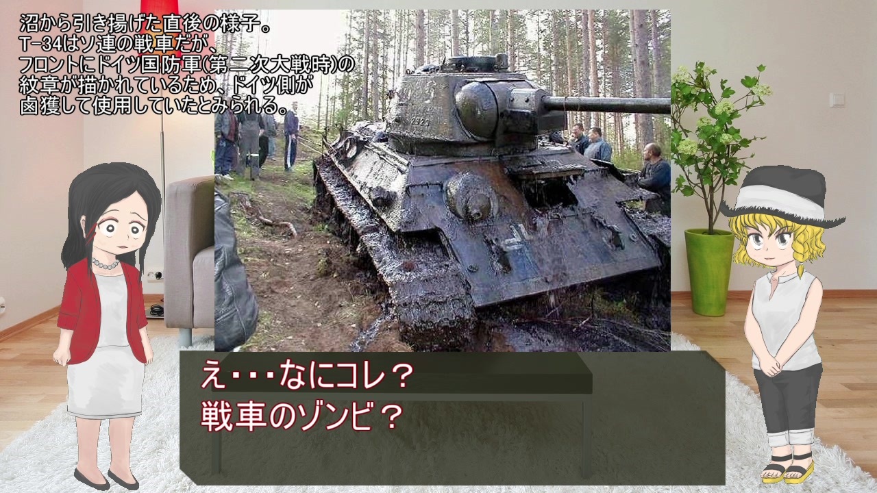 今回は番外編ということで、Bog Bodyに関連してPeat Bogに沈んだ戦車(T-34)を紹介。<br>こちらに実際に引き上げた際の映像(ロシア語)があります。 >> <a href="https://www.nicovideo.jp/watch/sm11678985" class="watch">sm11678985</a><br><br>Part 20 >> <a href="https://www.nicovideo.jp/watch/sm36479106" class="watch">sm36479106</a><br>Part 21 >> <a href="https://www.nicovideo.jp/watch/sm37824588" class="watch">sm37824588</a><br><br>他のミイラたち >> <a href="https://www.nicovideo.jp/mylist/56282710" target="_blank" rel="noopener">mylist/56282710</a><br>ミイラを題材にした自作ゲーム >> gm12236<br>AGA解説動画とか >> <a href="https://www.nicovideo.jp/mylist/60046387" target="_blank" rel="noopener">mylist/60046387</a><br>Voiceroid劇場とか >> <a href="https://www.nicovideo.jp/mylist/64150449" target="_blank" rel="noopener">mylist/64150449</a><br>動画中の魔理沙と霊夢の画像 >>> <a href="https://seiga.nicovideo.jp/seiga/im5870682" target="_blank" rel="noopener">im5870682</a>、<a href="https://seiga.nicovideo.jp/seiga/im5870690" target="_blank" rel="noopener">im5870690</a>