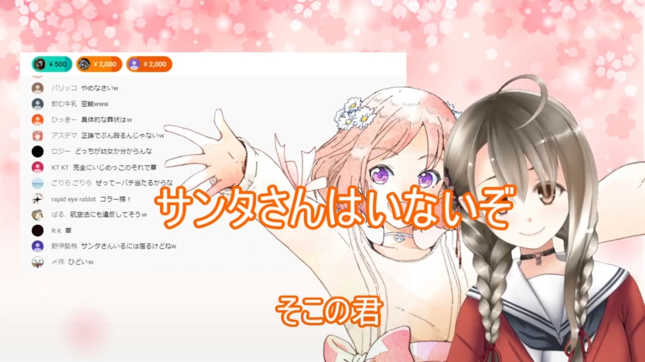 サンタさんいるもん!<br><br>動画にしている部分以外にも見どころあるので是非本編を見行ってみてください。<br><br>元動画<br>【雑談】今日もお疲れ様でした!花音もちょっとくるよ( ᐢ˙꒳˙ᐢ )【Vtuber】<br><a href="https://www.youtube.com/watch?v=dPWB8CbsJ-E" target="_blank" rel="noopener nofollow">https://www.youtube.com/watch?v=dPWB8CbsJ-E</a><br><br>楠栞桜チャンネル<br><a href="https://www.youtube.com/channel/UCPzlCaUmR2MFfIjpmosMM0A" target="_blank" rel="noopener nofollow">https://www.youtube.com/channel/UCPzlCaUmR2MFfIjpmosMM0A</a><br><br>※柾花音のチャンネルが事務所所属により新しくなりました<br>詳しくは↓<br>大事なお知らせ!<br><a href="https://twitcasting.tv/kanon_db/movie/603795296" target="_blank" rel="noopener nofollow">https://twitcasting.tv/kanon_db/movie/603795296</a><br><br>YouTubeチャンネル<br>まかのんれこーず<br><a href="https://www.youtube.com/channel/UCzwhUA6fhZ1KtBA7AOqehxQ" target="_blank" rel="noopener nofollow">https://www.youtube.com/channel/UCzwhUA6fhZ1KtBA7AOqehxQ</a><br><br>マイリスト<br><a href="https://www.nicovideo.jp/mylist/67967066" target="_blank" rel="noopener">mylist/67967066</a>