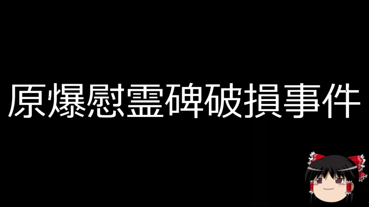 原爆慰霊碑破損事件<br>神社本庁爆破事件<br><br>リクエストがあれば、お気軽にコメしてもらえると幸いです。<br><br>大正・昭和・平成に日本で起きた事件をゆっくりさんに読んでもらいました。<br>Wikipediaコピペです<br><br>使用したBGM、SEはSenses Circuit→ttp://www.senses-circuit.com<br><br><a href="https://www.nicovideo.jp/watch/sm36622131" class="watch">sm36622131</a>←前 次→<a href="https://www.nicovideo.jp/watch/sm36641949" class="watch">sm36641949</a><br><br>日本事件簿マイリスト→<a href="https://www.nicovideo.jp/mylist/59772553" target="_blank" rel="noopener">mylist/59772553</a><br>MOTHER2マイリスト→<a href="https://www.nicovideo.jp/mylist/67848052" target="_blank" rel="noopener">mylist/67848052</a><br>ロックマンマイリスト→<a href="https://www.nicovideo.jp/mylist/67848049" target="_blank" rel="noopener">mylist/67848049</a><br>クトゥルフ神話マイリスト→<a href="https://www.nicovideo.jp/mylist/67468035" target="_blank" rel="noopener">mylist/67468035</a><br>世界事件簿マイリスト→<a href="https://www.nicovideo.jp/mylist/67318770" target="_blank" rel="noopener">mylist/67318770</a><br>SCPマイリスト→<a href="https://www.nicovideo.jp/mylist/59576028" target="_blank" rel="noopener">mylist/59576028</a><br>ゆっくり怪談マイリスト→<a href="https://www.nicovideo.jp/mylist/59576030" target="_blank" rel="noopener">mylist/59576030</a><br>不思議な病気マイリスト→<a href="https://www.nicovideo.jp/mylist/63539460" target="_blank" rel="noopener">mylist/63539460</a><br>PART1集→<a href="https://www.nicovideo.jp/mylist/59576031" target="_blank" rel="noopener">mylist/59576031</a><br>コミュ→co3663069