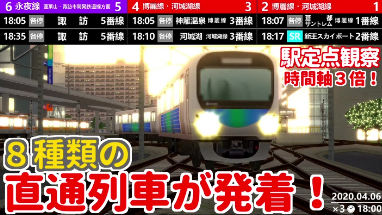 <span style="color: #000000; font-size: 14px;">▽おすすめ動画はこちら!!</span><br><a href="https://nico.ms/sm36620132" target="_blank" rel="noopener nofollow">https://nico.ms/sm36620132</a><br><br><span style="color: #000000; font-size: 14px;">▽中野高速鉄道YouTube公式チャンネル</span><br><span style="color: #006699; font-size: 14px;"><a href="https://www.youtube.com/channel/UCkla9kzqF8aVovOhNrsc4zw?view_as=subscriber" target="_blank" rel="noopener nofollow">https://www.youtube.com/channel/UCkla9kzqF8aVovOhNrsc4zw?view_as=subscriber</a></span><br><br><span style="color: #000000; font-size: 14px;">▽中野高速鉄道YouTube再生リスト</span><br><span style="color: #006699; font-size: 14px;"><a href="https://www.youtube.com/playlist?list=PLmQmPYFBjcQAng9dFylsCcZeCKdnNm-qe" target="_blank" rel="noopener nofollow">https://www.youtube.com/playlist?list=PLmQmPYFBjcQAng9dFylsCcZeCKdnNm-qe</a></span><br><br><span style="color: #030303; font-size: 14px;">▽動画説明<br>本日も、中野高速鉄道をご利用くださいまして誠にありがとうございます。<br>今回は、中野高速鉄道公式Twitterにて「今後、取り組んでほしい企画はなんですか?」とお客さまアンケートを実施したところ、「駅定点観察及びダイヤ解説」と「中鉄ストーリー」が同率で得票数が高い結果となりました。アンケート結果を踏まえ駅での定点観察及びダイヤ解説をテーマとした動画となります。A列車で行こう9の時間軸は3倍であり、動画ではさらに1.8倍速にしてお送りいたします。<br><br>【重要】当社は、使用素材・BGMの著作権を保有しておりません。使用素材・BGMの著作権は作成者様に帰属します。</span><br>