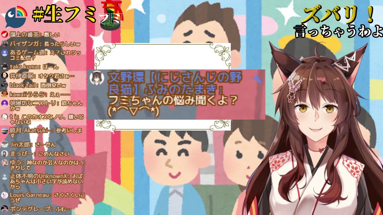 <br><span style="color: rgba(0, 0, 0, 0.87); font-size: 15px;">元動画 </span>【ズバリ!】お悩み解決【にじさんじフミ】<br><a href="https://www.youtube.com/watch?v=udpbPZrkRQw" target="_blank" rel="noopener nofollow">https://www.youtube.com/watch?v=udpbPZrkRQw</a><br><br><span style="color: rgba(0, 0, 0, 0.87); font-size: 15px;">▼フミ▼<br>チャンネル </span><a href="https://www.youtube.com/channel/UCwrjITPwG4q71HzihV2C7Nw" target="_blank" rel="noopener nofollow">https://www.youtube.com/channel/UCwrjITPwG4q71HzihV2C7Nw</a><br><span style="color: rgba(0, 0, 0, 0.87); font-size: 15px;">Twitter </span><a href="https://twitter.com/FumiVirtual" target="_blank" rel="noopener nofollow">https://twitter.com/FumiVirtual</a><br><br><span style="color: rgba(0, 0, 0, 0.87); font-size: 15px;">▼文野環▼<br>チャンネル </span><a href="https://www.youtube.com/channel/UCBiqkFJljoxAj10SoP2w2Cg" target="_blank" rel="noopener nofollow">https://www.youtube.com/channel/UCBiqkFJljoxAj10SoP2w2Cg</a><br><span style="color: rgba(0, 0, 0, 0.87); font-size: 15px;">Twitter </span><a href="https://twitter.com/nekokan_chu" target="_blank" rel="noopener nofollow">https://twitter.com/nekokan_chu</a>