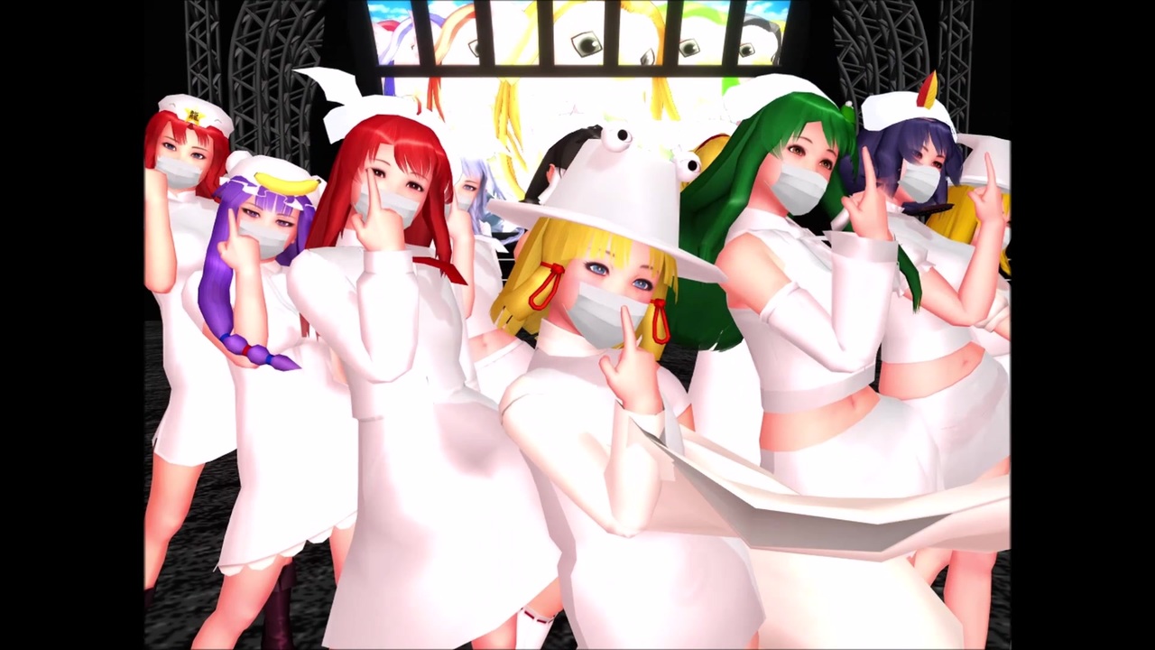 また色変えさせていただきましたm(_ _)m<br><br>そばかす式疾病対策部隊のつもりで作ったのですがチビっ子たちが給食係になってしまいました...<br><br>ひとりひとりの心がけで <span style="font-size: 24px;">疾病退散!!!!</span><br><br>つくったもの 素敵なそばかす式<a href="https://www.nicovideo.jp/mylist/67678239" target="_blank" rel="noopener">mylist/67678239</a><br>たのしいそばかす式<a href="https://www.nicovideo.jp/mylist/67678008" target="_blank" rel="noopener">mylist/67678008</a><br>そばかす式命蓮寺<a href="https://www.nicovideo.jp/mylist/69720319" target="_blank" rel="noopener">mylist/69720319</a><br>他 オ◯ロ<a href="https://www.nicovideo.jp/mylist/67678521" target="_blank" rel="noopener">mylist/67678521</a><br><br><br>お借りしたもの<br><br>モデル そばかす魔理沙の人様<br><br>【アマビエ】で曼珠沙華【モデル配布】(<a href="https://www.nicovideo.jp/watch/sm36479637" class="watch">sm36479637</a>) ムキムキの人様<br><br><br>モーション・音源 【MMD-DMC4】One・Two・Three【モーション配布】(<a href="https://www.nicovideo.jp/watch/sm19669706" class="watch">sm19669706</a>) nabca様<br><br>カメラ aro様<br><br>ステージ MMDアリーナ1.04(<a href="https://seiga.nicovideo.jp/seiga/im4629634" target="_blank" rel="noopener">im4629634</a>) ろっし/ビリヤードP様<br><br> 【MMDステージ配布】優しい輝きの空 TP4【スカイドーム】(<a href="https://seiga.nicovideo.jp/seiga/im6430916" target="_blank" rel="noopener">im6430916</a>) 怪獣対若大将P様<br><br>アクセサリ マスク【MMDアクセサリ配布】(<a href="https://seiga.nicovideo.jp/seiga/im10081740" target="_blank" rel="noopener">im10081740</a>) AssassinP様<br> <br> Lat式ミクYohl流フリーTシャツモデル専用「ナースキャップ」 plover様 MMDFakewings18様<br><br><br>エフェクト dSAdultShader ver.1.00 ドゥドゥ様<br><br> 水面エフェクトver5.0 ビームマンP様<br><br> DiscoLightEx.fx v0.0.3 針金P様<br><br>広告、たくさんのコメありがとうございます。