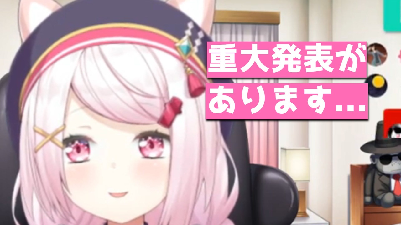 ※コメ欄のご指摘にもある通り、このあとにラインスタンプの発表もありました。ラインスタンプのリンク張っておきます。後付けになり申し訳ございません。<br><a href="https://store.line.me/stickershop/product/11205514/ja" target="_blank" rel="noopener nofollow">https://store.line.me/stickershop/product/11205514/ja</a><br><br>元動画様<br>◆【生配信】4月度ゴリスナー総会☆彡ちょっとしか報告があります!【椎名唯華/にじさんじ】<br><a href="https://youtu.be/sKPCn3AfIBg?t=57" target="_blank" rel="noopener nofollow">https://youtu.be/sKPCn3AfIBg?t=57</a><br><br>◆椎名唯華のチャンネル登録<br><a href="https://www.youtube.com/channel/UC_4tXjqecqox5Uc05ncxpxg" target="_blank" rel="noopener nofollow">https://www.youtube.com/channel/UC_4tXjqecqox5Uc05ncxpxg</a><br><br>使用させて頂いたBGM<br>フリー音楽素材『魔王魂』のドラムロール<br><a href="https://maoudamashii.jokersounds.com/archives/se_maoudamashii_instruments_drumroll.html" target="_blank" rel="noopener nofollow">https://maoudamashii.jokersounds.com/archives/se_maoudamashii_instruments_drumroll.html</a>