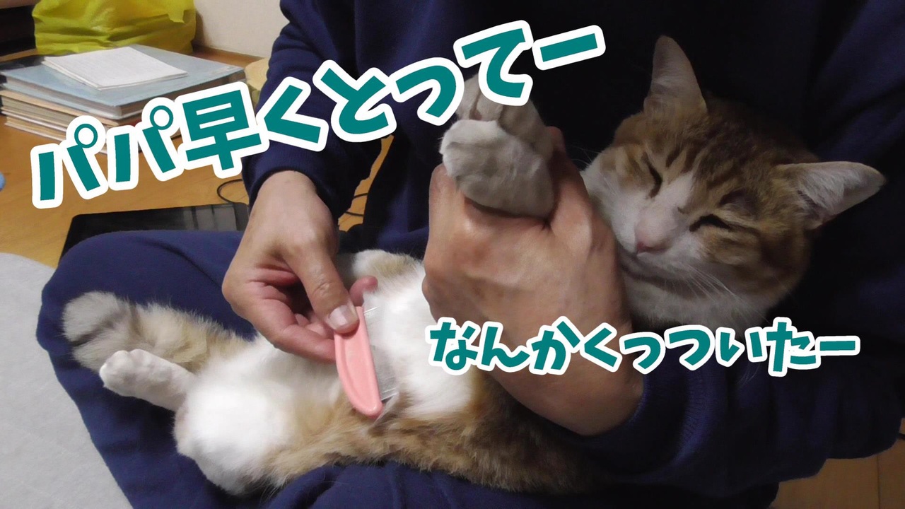 猫が何かくっつけてきたので取ってほしそうにしてきた。 4:42