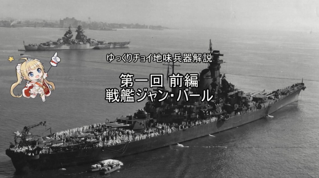 初投稿です。<br><br>皆知ってそうで知らない、フランス戦艦。<br>その中で、最良かつ最速かつ最強かつ最遅完成の戦艦、ジャン・バールをご紹介。<br>資料がフランス語ばっかりで、すげー疲れたゾ・・・・・・<br><br>次→後編 性能編<a href="https://www.nicovideo.jp/watch/sm36674596" class="watch">sm36674596</a><br><br /><br>Youtube→<a href="https://www.youtube.com/channel/UCIDSVqAn-64kSLCBekU0cWQ/featured?view_as=subscriber" target="_blank" rel="noopener nofollow">https://www.youtube.com/channel/UCIDSVqAn-64kSLCBekU0cWQ/featured?view_as=subscriber</a><br><br>Twitter→<a href="https://twitter.com/DDInazuma1115" target="_blank" rel="noopener nofollow">https://twitter.com/DDInazuma1115</a>