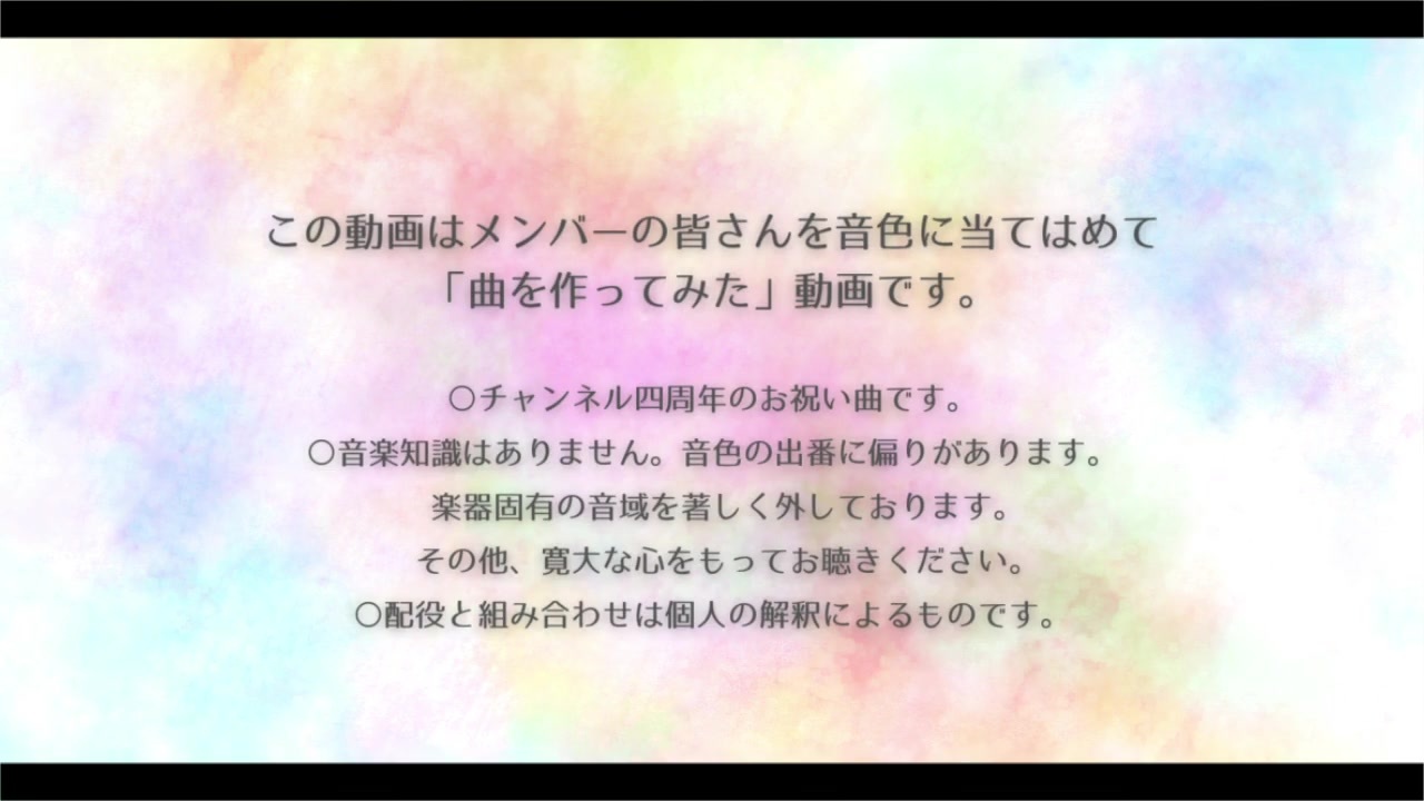 大変遅ればせながら、チャンネル四周年おめでとうございます。<br>記念動画とブロマガを見て抑えられなくなり、工ンブレム会議で追い撃ちされました。短いですがお祝いと喜びの気持ちを込めて、14人分の楽器で作った曲をお送りします。<br><br>・本家様への迷惑になる行為はお控えください。<br>・無断転載はご遠慮ください。<br><br>作ったもの:<a href="https://www.nicovideo.jp/mylist/63760456" target="_blank" rel="noopener">mylist/63760456</a>