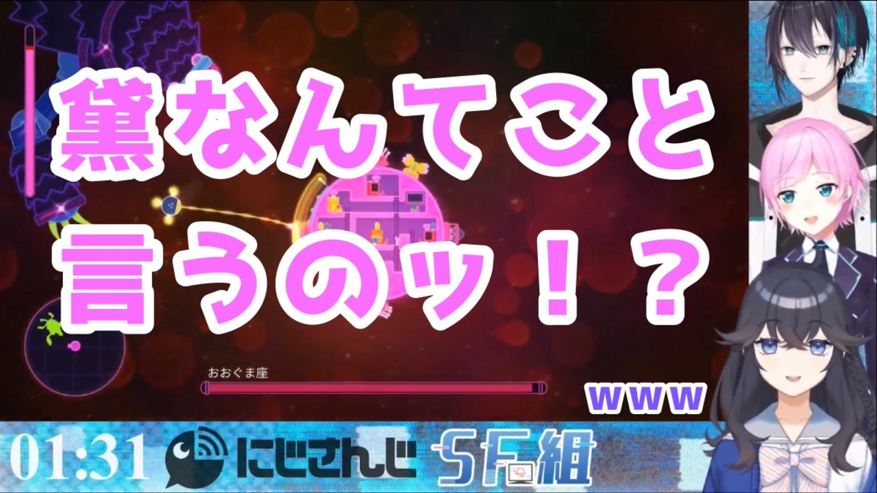 SF組は家族だった…?<br><br>元動画<br><a href="https://www.youtube.com/watch?v=1-_cuNSdUZw" target="_blank" rel="noopener nofollow">https://www.youtube.com/watch?v=1-_cuNSdUZw</a><br><br>SF組<br>夕陽リリ<br><a href="https://www.youtube.com/channel/UC48jH1ul-6HOrcSSfoR02fQ" target="_blank" rel="noopener nofollow">https://www.youtube.com/channel/UC48jH1ul-6HOrcSSfoR02fQ</a><br>出雲霞<br><a href="https://www.youtube.com/channel/UCLpYMk5h1bq8_GAFVBgXhPQ" target="_blank" rel="noopener nofollow">https://www.youtube.com/channel/UCLpYMk5h1bq8_GAFVBgXhPQ</a><br>黛灰<br><a href="https://www.youtube.com/channel/UCb5JxV6vKlYVknoJB8TnyYg" target="_blank" rel="noopener nofollow">https://www.youtube.com/channel/UCb5JxV6vKlYVknoJB8TnyYg</a><br><br>プレイしていたゲーム<br>『Lovers in a Dangerous Spacetime』