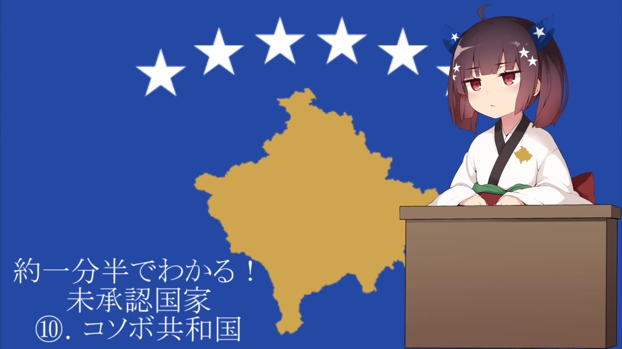 <span style="color: #262626; font-size: 16px;">第十弾です。ついに二桁。 <br>今回はとても有名な国、コソボ共和国です。どのくらい有名かというと、絵文字もあるぐらい有名です。 <br>前回10000再生嬉しいって言ったらその動画が10000再生されませんでした。少し悲しい。<br> 初期のオープニングが最終回で流れるってエモくないですか?このシリーズはまだ終わりませんけど。<br><br>・今までの未承認国家解説のリストです。【 <a href="https://www.nicovideo.jp/series/35395" target="_blank" rel="noopener nofollow">https://www.nicovideo.jp/series/35395</a> 】<br>welcome→<a href="https://twitter.com/cuddle_ghost" target="_blank" rel="noopener nofollow">https://twitter.com/cuddle_ghost</a><br><br>・使用させていただいたもの<br>柴又/re様[<a href="https://www.nicovideo.jp/watch/sm32523878" class="watch">sm32523878</a>]<br>柴又.piano/えふた様[<a href="https://www.nicovideo.jp/watch/sm33507219" class="watch">sm33507219</a>]<br>きりたん立ち(座り)絵/ふゆき様[<a href="https://seiga.nicovideo.jp/seiga/im8000964" target="_blank" rel="noopener">im8000964</a>]<br>ぺこぱ[ <a href="https://www.youtube.com/user/yuta2668" target="_blank" rel="noopener nofollow">https://www.youtube.com/user/yuta2668</a> ]<br><br>・ぺこぱのtwitter<br>シュウペイ[ <a href="https://twitter.com/shupei0716" target="_blank" rel="noopener nofollow">https://twitter.com/shupei0716</a> ]<br>松陰寺太勇[ <a href="https://twitter.com/shoinjitaiyu" target="_blank" rel="noopener nofollow">https://twitter.com/shoinjitaiyu</a> ]</span>