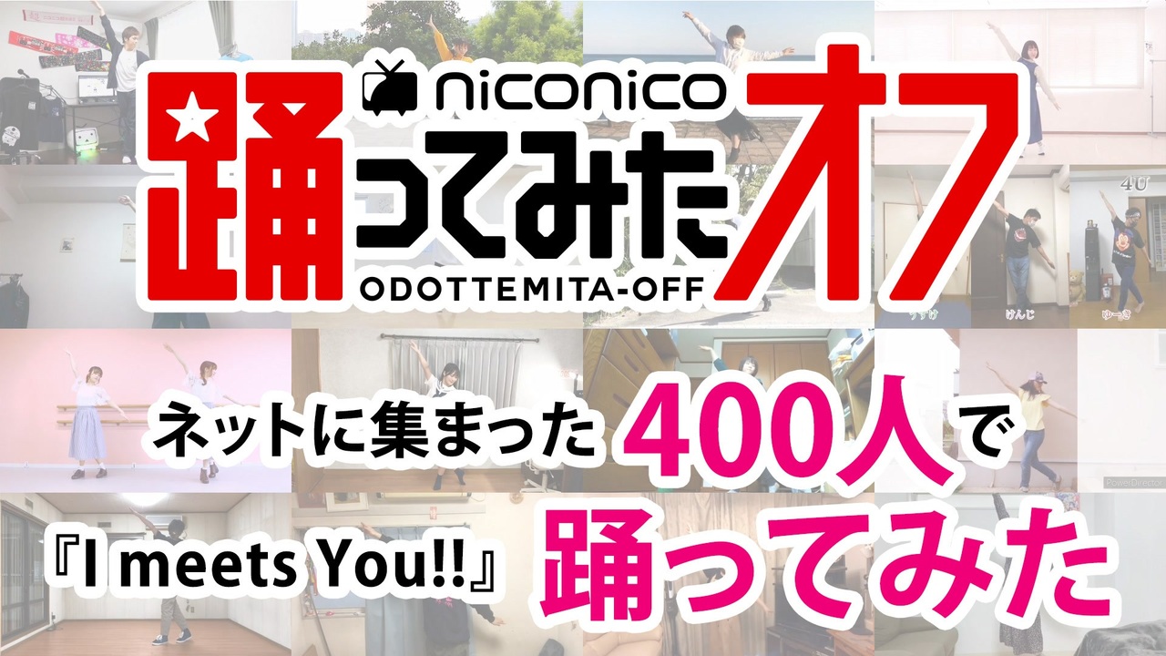 <span style="color:#ff00ff;font-size:18px;">今できることを始めてみようか</span><br><br>ニコニコ超会議「超踊ってみた」ブースで恒例の大人気企画!<br>みんなで同じ楽曲・同じ振り付けを同時に踊る『踊オフ』を、ニコニコネット超会議2020でも開催!!<br><br>日本全国はもちろん海外からも、ネットに集まった400人で、踊ってみた動画を作りました!<br><br>さらに、スペシャルゲストとして<br> ・加藤一二三さん<br> ・Kizuna AIさん<br> ・小林幸子さん<br> ・初音ミクさん <span style="font-size:10px;">© Crypton Future Media, INC. www.piapro.net</span><br> ・やまだひさしさん<br> ・百花繚乱さん<br>も参戦!<br><br><span style="color:#ff00ff;font-size:18px;">「踊ってみた」はこんな時だって楽しめる!!!!</span><br><br>============================<br>2020年の書き下ろしテーマソング<br>『I meets You!!』 <a href="https://www.nicovideo.jp/watch/sm36648232" class="watch">sm36648232</a><br> 作詞:みきとP&てにをは<br> 作曲:みきとP<br> 編曲:emon(Tes.)<br><br>振り付け動画:<a href="https://www.nicovideo.jp/watch/sm36564096" class="watch">sm36564096</a><br>============================<br><br><ニコニコネット超会議2020><br>【公式Webサイト】 <a href="https://chokaigi.jp" target="_blank" rel="noopener nofollow">https://chokaigi.jp</a><br>【公式Twitterアカウント】 <a href="https://twitter.com/chokaigi_PR" target="_blank" rel="noopener nofollow">https://twitter.com/chokaigi_PR</a><br>