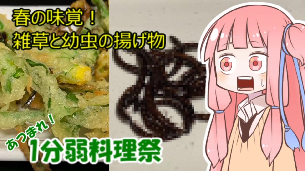 多分初投稿だと思います<br><span style="color: #262626; font-size: 16px;">いいねを押すと動画制作裏話が読めるようにしました</span><br><br>先日川へ釣りしに行ったのですが釣果0でした。<br>せっかくなのでそこで野草を摘んで動画にしてみました。<br><br>魚を釣るにはまず魚の気持ちを知るところからと友人が言っていたのでついでに釣り餌も食べてみました。<br><br>※追記(味について)<br>菜の花の天ぷらは柔らかく草の甘みがあって美味しい。<br>ミルワームは香ばしい香りが食欲を誘うもの。サクサクとした食感が楽しくて生で食べるより美味しかった。<br>生は周りの少し固めの皮が口に残って若干舌触り悪かった。全体としてはエビの尻尾を食べてる感じがした。<br><br>次動画→<a href="https://www.nicovideo.jp/watch/sm36744991" class="watch">sm36744991</a> (ミント感マシマシチョコミントアイス)<br><br><span style="color: #000000; font-size: 24px;">きりたんの新シリーズ → <a href="https://www.nicovideo.jp/watch/sm37370663" class="watch">sm37370663</a></span><br><br><span style="color: #000000; font-size: 14px;">日常、動画進捗状況、たまにTwitter限定動画 Twitter→ </span><span style="color: #006699; font-size: 14px;"><a href="https://twitter.com/yanagimohumohu" target="_blank" rel="noopener nofollow">https://twitter.com/yanagimohumohu</a></span><br><br><span style="color: #000000; font-size: 14px;">◆参加企画<br>あつまれ!1分弱料理祭告知動画: </span><span style="color: #006699; font-size: 14px;"><a href="https://www.nicovideo.jp/watch/sm36583175" class="watch">sm36583175</a></span><br><span style="color: #000000; font-size: 14px;">主催者りょの字様マイリスト: </span><span style="color: #006699; font-size: 14px;"><a href="https://www.nicovideo.jp/mylist/68029343" target="_blank" rel="noopener">mylist/68029343</a></span><br>