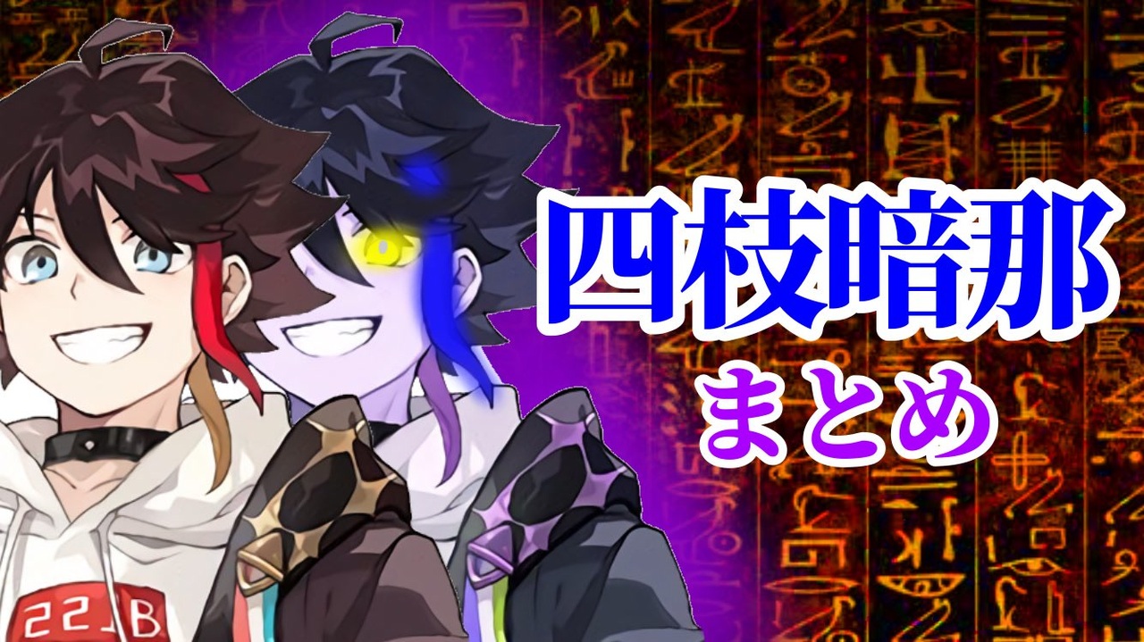 最初の非公式wiki見てる配信↓<br><a href="https://youtu.be/ActX7SrZ3oY" target="_blank" rel="noopener nofollow">https://youtu.be/ActX7SrZ3oY</a><br><br>紅ズワで話してる配信↓<br><a href="https://youtu.be/aakz-e7Qxg4" target="_blank" rel="noopener nofollow">https://youtu.be/aakz-e7Qxg4</a><br><br>最初の四枝が出た配信↓<br><a href="https://youtu.be/qEWDPh-fkVk" target="_blank" rel="noopener nofollow">https://youtu.be/qEWDPh-fkVk</a><br><br>1人1-2-Switch!!の配信↓<br><a href="https://youtu.be/DDh3MeIJ_P4" target="_blank" rel="noopener nofollow">https://youtu.be/DDh3MeIJ_P4</a><br><br>三枝明那<br><a href="https://www.youtube.com/channel/UCNW1Ex0r6HsWRD4LCtPwvoQ" target="_blank" rel="noopener nofollow">https://www.youtube.com/channel/UCNW1Ex0r6HsWRD4LCtPwvoQ</a><br><br>愛園愛美<br><a href="https://www.youtube.com/channel/UC0WwEfE-jOM2rzjpdfhTzZA" target="_blank" rel="noopener nofollow">https://www.youtube.com/channel/UC0WwEfE-jOM2rzjpdfhTzZA</a><br><br>ED使用曲<br><a href="https://youtu.be/Qd01-6xVSHk" target="_blank" rel="noopener nofollow">https://youtu.be/Qd01-6xVSHk</a><br><br>アッキーナ1周年記念配信と紅ズワ結成1周年記念配信で言及されたアッキーナの別人格『四枝暗那』のまとめです。切り抜きがニコニコにもYouTubeにも無かったので愛園さんたっての希望で作りました。<br>四枝くん、FAもそこそこにあって根強いファンが多い印象があります。取れ高くんやかめっくしゅくんと同じくマスコット枠だと思ってます。<br>最近ハマった人には1周年配信で知ったって言う人も多そう。単純に非公式wiki読んで知った人も居そうですけれども。<br>今後、四枝くんが出る事はあるのか…。それはアッキーナの気分次第だと思います。あっ、いや、まぁ、別人格なんで気分とかに左右される事は無いんですけども。はい。うん。<br><br><br>世間では某ウイルスが猛威を振るっていますね。紅ズワの2度目のオフが消されたのでいつか必ずこの手で潰してやりたいのですが本人たちの安全が第一なので仕方ないかな…と。あれ、この話前にもしたな。認知症か?<br>昨今の情勢の話が出たので自分語りなんですが、ウチの仕事も午前or午後のみ出勤が増えましたね。給料はほんのちょっと下がりましたが、編集とかの作業時間は増えたので嬉しいです。モチベが出ずにこのまとめの編集サボって遅れたのは内緒。<br>あと、ゲームとか読書をする時間も増えました。あつ森楽しい。ウチの特産品はオレンジとバラです。名前は『かべ島』です。安直。<br>まだ始めて2週間ぐらいなので、崖とか川とか弄れるようになったら島の周りを壁で囲いたいなって思います。その日人類は支配されてた恐怖と鳥籠の中に囚われていた屈辱を思い出しそう。<br /><br><br><span style="font-size: 10px;">私のマイリスト→ <a href="https://www.nicovideo.jp/user/60201467/mylist" target="_blank" rel="noopener nofollow">https://www.nicovideo.jp/user/60201467/mylist</a><br>私のTwitter→ <a href="https://twitter.com/a1sy2of" target="_blank" rel="noopener nofollow">https://twitter.com/a1sy2of</a><br>YouTube→<a href="https://www.youtube.com/channel/UCDXZuseWr9okt-8A6_vi2Zg" target="_blank" rel="noopener nofollow">https://www.youtube.com/channel/UCDXZuseWr9okt-8A6_vi2Zg</a><br>ご質問→ <a href="https://marshmallow-qa.com/a1sy2of" target="_blank" rel="noopener nofollow">https://marshmallow-qa.com/a1sy2of</a> </span><br><br><span style="color: #ff0000; font-size: 10px;">※動画を無断で転載する事は過去の動画も含めて禁止にさせていただいております。<br>※悪質な行為が散見されたのでタグを埋めさせていただいております。ご理解の程よろしくお願いします。</span>
