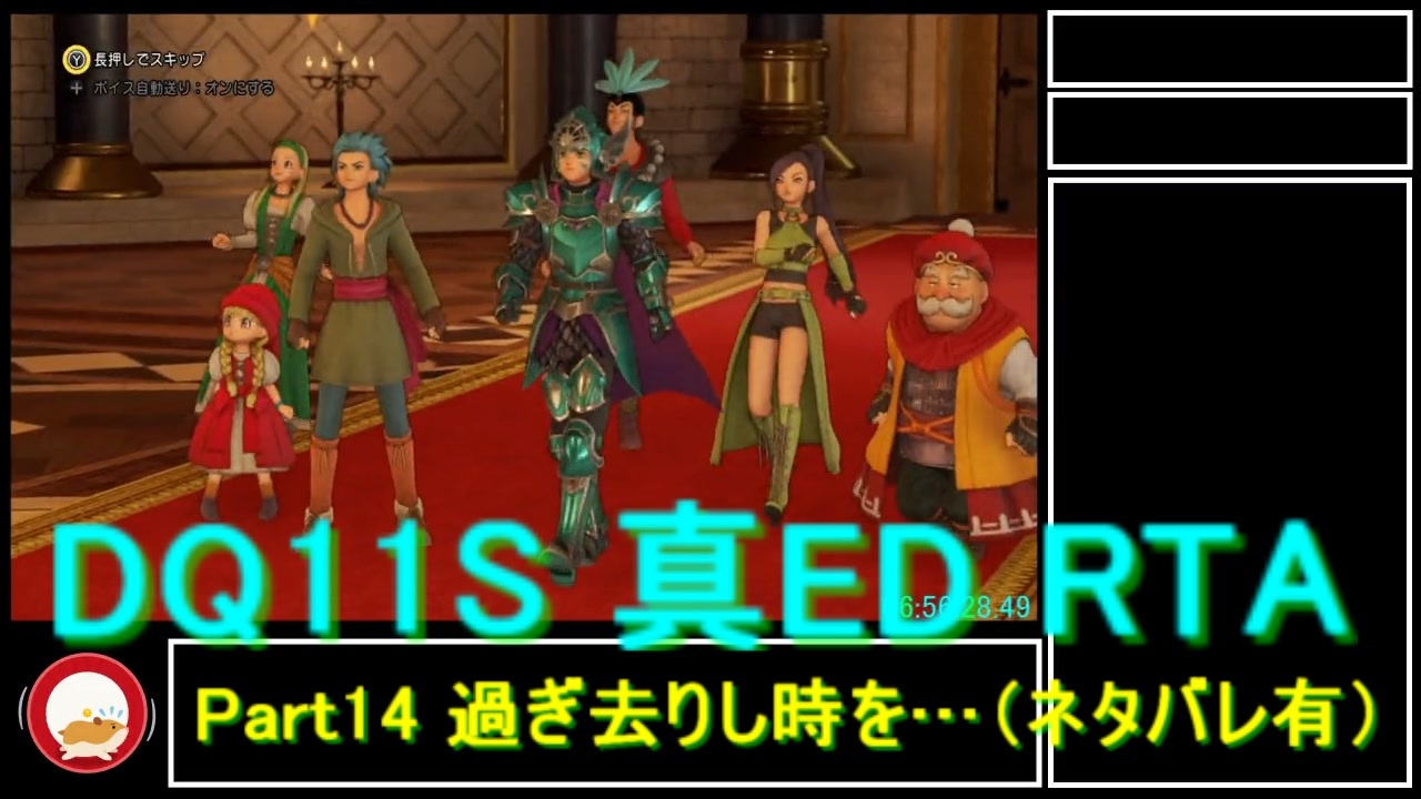 クリア後のお話,ネタバレ有り。<br>「それでもかまわん!」となったらぜひご視聴ください。なおガバ (´・ω・)<br><br>過ぎ去りし時を求める()<br><br><span style="font-size: 16px;"><strong>追記:(2021年3月)Steamで再走し、約2時間短縮しました(Part1はこちら)→<a href="https://www.nicovideo.jp/watch/sm38525630" class="watch">sm38525630</a></strong></span><br><br>Part13:<a href="https://www.nicovideo.jp/watch/sm38213266" class="watch">sm38213266</a>(配信規約改定に合わせ、再編集しました)<br>Part15(最終回):<a href="https://www.nicovideo.jp/watch/sm38213338" class="watch">sm38213338</a>(配信規約改定に合わせ、再編集しました)<br>真EDマイリスト:<a href="https://www.nicovideo.jp/mylist/67575607" target="_blank" rel="noopener">mylist/67575607</a><br><br>【プレイ環境・レギュレーション】<br>・「冒険の書を作る」選択~「真ボスやっつけた」表示まで ※詳細はPart1<br>・「復活の呪文」「プレゼント受取」「2D切り替え」なし<br>・Switch・パッケージ版・手動コン使用<br>・配信禁止区間対策で、表ボス後画面を隠します<br><br><br />生放送コミュ:co4223870<br>Twitter:<a href="https://twitter.com/tushitottoko" target="_blank" rel="noopener nofollow">https://twitter.com/tushitottoko</a><br>Youtube:<a href="https://www.youtube.com/channel/UCQSR51Ct-JiGwsrlO27IH-g" target="_blank" rel="noopener nofollow">https://www.youtube.com/channel/UCQSR51Ct-JiGwsrlO27IH-g</a><br>チャート置き場→<a href="http://tushirta.livedoor.blog/" target="_blank" rel="noopener nofollow">http://tushirta.livedoor.blog/</a><br><br>【著作権】 DQ公式サイトより引用<br><br>この動画で利用している株式会社スクウェア・エニックスを代表とする共同著作者が権利を所有する著作物及びスギヤマ工房有限会社が権利を所有する楽曲の転載・配布は禁止いたします。<br><br>(C) ARMOR PROJECT/BIRD STUDIO/SQUARE ENIX All Rights Reserved.<br>(C) SUGIYAMA KOBO (P) SUGIYAMA KOBO
