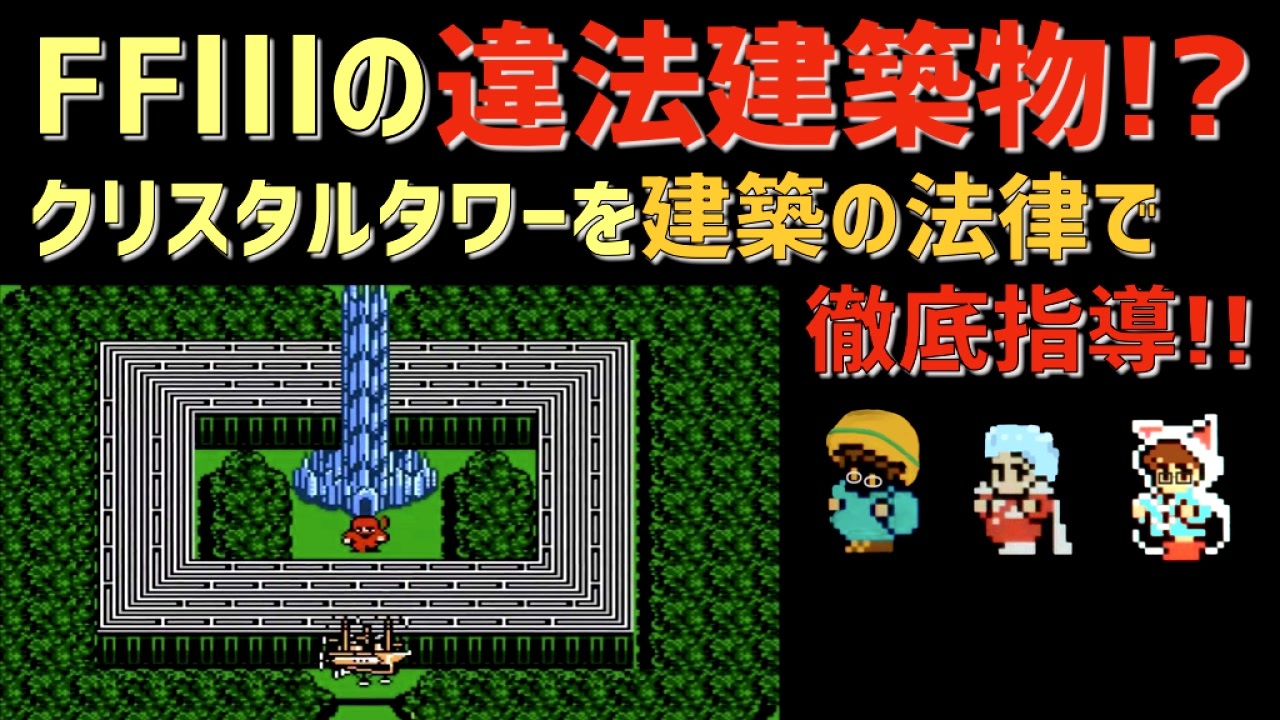 <span style="color: rgba(0, 0, 0, 0.870588); font-size: 15px;">ファイナルファンタジー3のラストダンジョン「クリスタルタワー」の<br>実際の建築の法律に違反しているところを検証、指導する動画です。。<br><br>これまで<br>ドラゴンクエスト 「りゅうおうのしろ」</span><br><span style="color: #006699; font-size: 14px;"><a href="https://www.nicovideo.jp/watch/sm35283959" class="watch">sm35283959</a></span><br><span style="color: rgba(0, 0, 0, 0.870588); font-size: 15px;">ドラゴンクエストⅡ 「ハーゴンの城」</span><br><a href="https://www.nicovideo.jp/watch/sm36031343" class="watch">sm36031343</a><br><span style="color: rgba(0, 0, 0, 0.870588); font-size: 15px;">を建築の法律に違反しているところを指導してきました。<br><br>第三弾としてファイナルファンタジーの世界に舞台を移しました。<br><br>※時代考証、技術考証に限界があるので過度なツッコミはおやめ下さい。<br><br>※※尺の都合上、全ての法令を検証はしておりません。ご了承ください。<br><br>動画末尾のイラストは正井舞さん(@mai_masai)<br>に書いていただきました!!<br>PIXIV:<a href="https://www.pixiv.net/users/23166632" target="_blank" rel="noopener nofollow">https://www.pixiv.net/users/23166632</a><br>バーチャル個展にも出展されてます。<br> <a href="https://www.virtualartstudio.net/" target="_blank" rel="noopener nofollow">https://www.virtualartstudio.net/</a><br><br>BGMはこちらから</span><br><a href="https://www.youtube.com/channel/UCZ08wuQ3R6ebJKeZlpSM-Gw" target="_blank" rel="noopener nofollow">https://www.youtube.com/channel/UCZ08wuQ3R6ebJKeZlpSM-Gw</a><br><br><br><span style="font-size: 14px;">過去の建築解説講座↓<br>ゆっくり建築解説講座マイリストまとめ →</span><span style="color: #006699; font-size: 14px;"><a href="https://www.nicovideo.jp/mylist/62521053" target="_blank" rel="noopener">mylist/62521053</a></span><br>