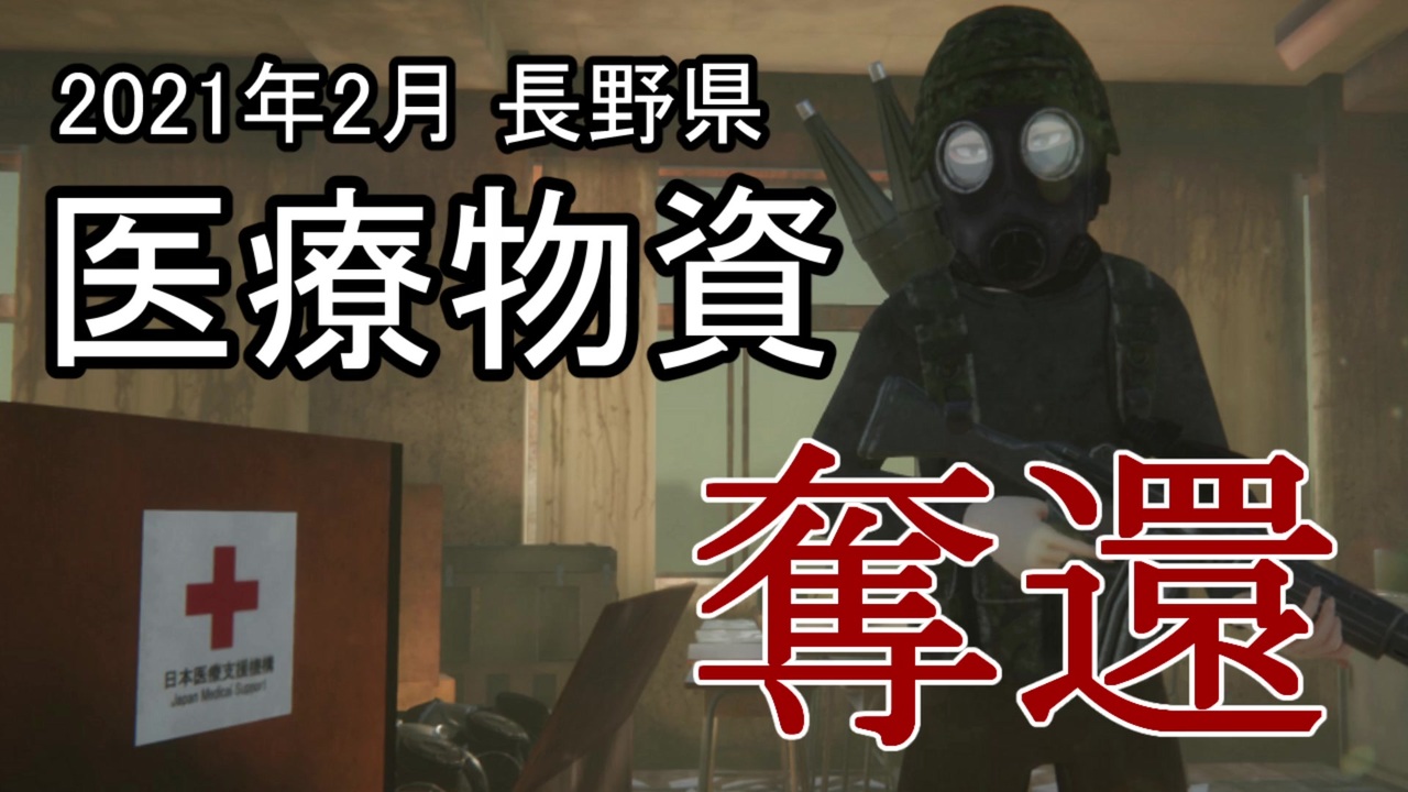 YouTube版:<br><a href="https://www.youtube.com/watch?v=qxj1oxUz5_0" target="_blank" rel="noopener nofollow">https://www.youtube.com/watch?v=qxj1oxUz5_0</a><br> <br>2021年2月3日 長野県古崎町<br>県内に残された人工呼吸器・防護マスク等の医療物資を政権側が県立古崎高校にかき集め、<br>東京へ向け移送を試みているとの情報を得ましたので、阻止に向かいました。<br> <br>ウイルスの度重なる変異により世界人口は半分以下に減少し、<br>医療体制が崩壊した我が国においても残り僅かな医療物資を巡って戦闘が激化しています。<br>現政権は各地方都市に残った医療物資を東京にかき集め、中央省庁に行き渡らせようとしています。<br>本来なら地方の重症患者を救うはずだった医療品を、この惨状を招いた永田町や霞が関の連中のために<br>使わせるようなことはあってはなりません。<br> <br>※2020年4月現在、当動画は完全なるフィクションであり、実在する人物・団体・出来事とは一切関係ありません。<br> <br>Twitter:<br><a href="https://twitter.com/NotoMuteki" target="_blank" rel="noopener nofollow">https://twitter.com/NotoMuteki</a>