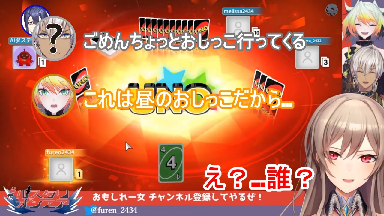 終始笑ってましたw<br><br>この企画の詳細は↓<br>機密会議【メリッサ・キンレンカ/長尾景】<br><a href="https://www.youtube.com/watch?v=aaq0vkM22Jc&t=685s" target="_blank" rel="noopener nofollow">https://www.youtube.com/watch?v=aaq0vkM22Jc&t=685s</a><br><br>元動画<br>フレン・E・ルスタリオ視点<br>【UNO】メイフで突発UNO大会!!【フレン・E・ルスタリオ/メリッサ・キンレンカ/イブラヒム】<br><a href="https://www.youtube.com/watch?v=RPmJd0WXsqk&t=1685s" target="_blank" rel="noopener nofollow">https://www.youtube.com/watch?v=RPmJd0WXsqk&t=1685s</a><br>長尾景視点<br>【UNO】【冥府コラボ】この俺がイブラヒム【長尾景/にじさんじ】<br><a href="https://www.youtube.com/watch?v=Rtg8KauKtys&t=1s" target="_blank" rel="noopener nofollow">https://www.youtube.com/watch?v=Rtg8KauKtys&t=1s</a><br><br>各チャンネル<br>フレン・E・ルスタリオ<br><a href="https://www.youtube.com/channel/UCuep1JCrMvSxOGgGhBfJuYw" target="_blank" rel="noopener nofollow">https://www.youtube.com/channel/UCuep1JCrMvSxOGgGhBfJuYw</a><br>メリッサ・キンレンカ<br><a href="https://www.youtube.com/channel/UCwcyyxn6h9ex4sMXGtpQE_g" target="_blank" rel="noopener nofollow">https://www.youtube.com/channel/UCwcyyxn6h9ex4sMXGtpQE_g</a><br>長尾景<br><a href="https://www.youtube.com/channel/UCXW4MqCQn-jCaxlX-nn-BYg" target="_blank" rel="noopener nofollow">https://www.youtube.com/channel/UCXW4MqCQn-jCaxlX-nn-BYg</a><br>イブラヒム<br><a href="https://www.youtube.com/channel/UCmZ1Rbthn-6Jm_qOGjYsh5A" target="_blank" rel="noopener nofollow">https://www.youtube.com/channel/UCmZ1Rbthn-6Jm_qOGjYsh5A</a><br><br>にじさんじマイリスト<br><a href="https://www.nicovideo.jp/mylist/68182288" target="_blank" rel="noopener">mylist/68182288</a>