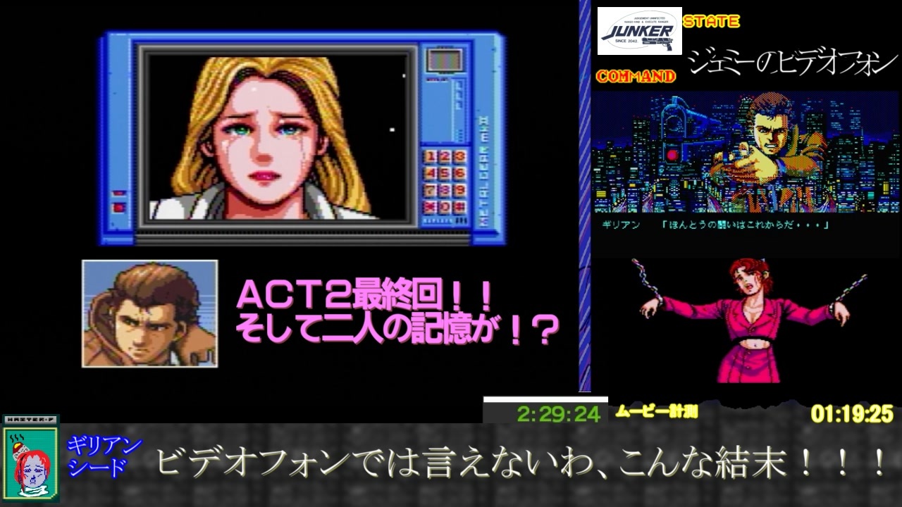 約2ヶ月ほど前に投稿したあの小島秀夫監督の<br>名作サイバーパンクアドベンチャーの<br>リアルタイムアタック動画(<a href="https://www.nicovideo.jp/watch/sm35957795" class="watch">sm35957795</a>)(speedrun)に<br>ゆっくり編集を加えたものです。<br><br>◯<span style="color: #000000; font-size: 14px;">◯病院脱出</span>~ACT2ENDまでです。<br><br>本走開始から5ヶ月でやっとACT2終了。<br>ACT3は一旦休止してそろそろRPGの編集したいです。<br>あと、最後にオープニングをくっつけました。<br><br>ACT2 Part3 <a href="https://www.nicovideo.jp/watch/sm36642671" class="watch">sm36642671</a> ACT3 Part1 <a href="https://www.nicovideo.jp/watch/sm38899024" class="watch">sm38899024</a><br>マイリスト <a href="https://www.nicovideo.jp/mylist/60410734" target="_blank" rel="noopener">mylist/60410734</a><br><br>めし太郎の質問箱です。 <a href="https://peing.net/ja/shamojiotoko" target="_blank" rel="noopener nofollow">https://peing.net/ja/shamojiotoko</a><br>ツイッター @shamojiotoko<br><br>umi様、ちゅうでん様、ジョン・スミス様、紫楼様、@(´・ω・`)様、Lui様、DROP様、ユニオタ様、;(∩´ω`∩);:様、りんご様、手のひらサイズ様、JJ10様、シバ様、白雪 楓様、moon of red様、ぷぎょなしおぴ様、社長。様、エイペック様、ニース様、若葉紅葉様、太陽様、もけけ様、シュバイン様、furutate様、せいどん様、鉢巻ヤンベェ様、kanan様、Nibelunge Nôt様、yao-lung 様、..様、ぼたもち様、ゲスト様、986様、docco様、孤独犬ポチ様、チャリ様、ポンデン様、tatibana様、れっどてーる様、<span style="color: #000000; font-size: 13px;">RF-90/EROべイター様、</span>kon様、小島よしお様、k2shoot様、ぴのっち様、blim様、<span style="color: #000000; font-size: 13px;">hahawa様、</span>ひょん様、広告ありがとうございました。