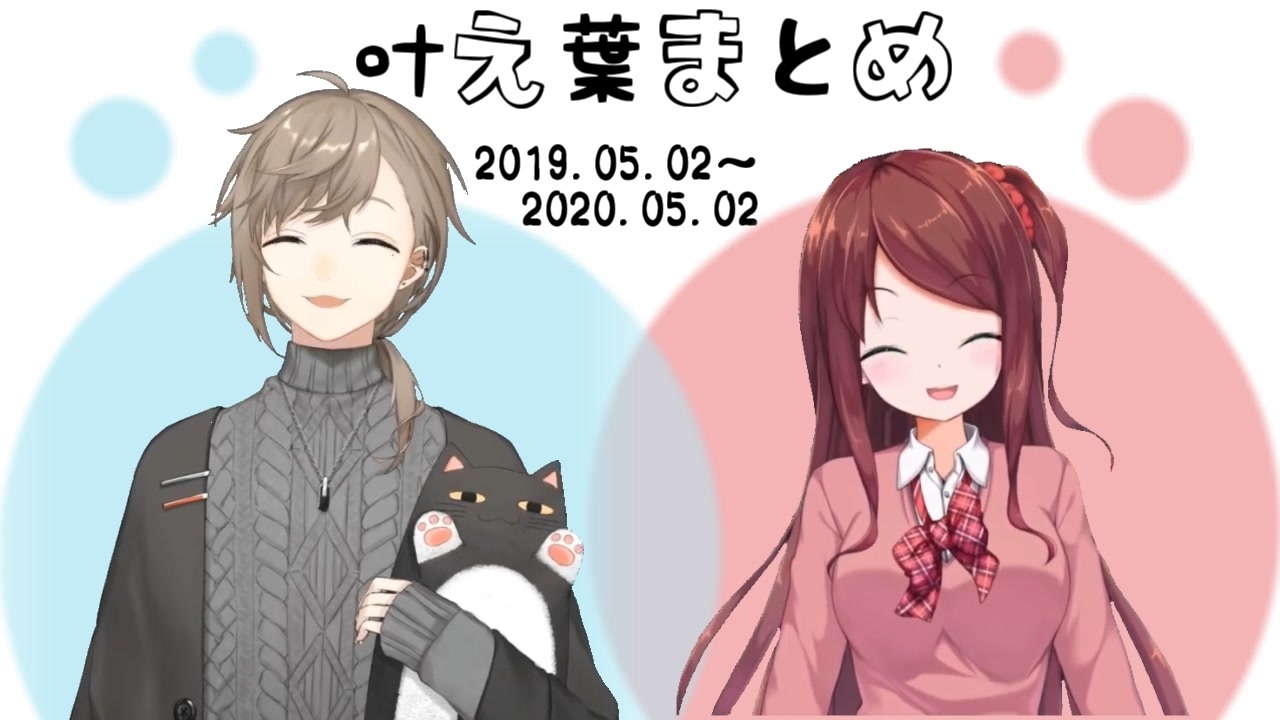 使用動画一覧<br><a href="https://www.youtube.com/playlist?list=PLj0KD-oDK2pGQSK-vCCfLflE1nb_vXypd" target="_blank" rel="noopener nofollow">https://www.youtube.com/playlist?list=PLj0KD-oDK2pGQSK-vCCfLflE1nb_vXypd</a><br><br>1周年~2周年までの叶え葉まとめです<br>個人的な思い入れでヒーローも多いです<br><br>↓時間の都合上入れられなかったアーカイブ等↓<br>これは、伝説の刑事二人の物語|RICO<br><a href="https://youtu.be/2_kwet7wl-w" target="_blank" rel="noopener nofollow">https://youtu.be/2_kwet7wl-w</a><br>あっきーなとドン勝取るまで眠れません。|PUBG<br><a href="https://www.youtube.com/watch?v=6jNpCOP7v2U&t=3415" target="_blank" rel="noopener nofollow">https://www.youtube.com/watch?v=6jNpCOP7v2U&t=3415</a><br>お久しぶりのシリンソウ!|???<br><a href="https://youtu.be/EJ2BnvWc6YY" target="_blank" rel="noopener nofollow">https://youtu.be/EJ2BnvWc6YY</a><br>新衣装公開|変化は身なりにも出やすい説<br><a href="https://youtu.be/K_LlOiqaEpo?t=934" target="_blank" rel="noopener nofollow">https://youtu.be/K_LlOiqaEpo?t=934</a><br>ARK|19時から四皇会議<br><a href="https://youtu.be/I8ADp5sKbmA?t=1105" target="_blank" rel="noopener nofollow">https://youtu.be/I8ADp5sKbmA?t=1105</a><br>雀魂‐じゃんたま‐ | ぐんかんと出雲さんと!<br><a href="https://youtu.be/0CXS1GRt89U?t=12037" target="_blank" rel="noopener nofollow">https://youtu.be/0CXS1GRt89U?t=12037</a><br><br>1周年動画→<a href="https://www.nicovideo.jp/watch/sm35052286" target="_blank" rel="noopener nofollow">https://www.nicovideo.jp/watch/sm35052286</a><br><br><span style="color: #6d9eeb; font-size: 13px;">【叶】</span> <br>YouTube→<a href="https://www.youtube.com/channel/UCspv01oxUFf_MTSipURRhkA" target="_blank" rel="noopener nofollow">https://www.youtube.com/channel/UCspv01oxUFf_MTSipURRhkA</a> <br>Twitter→<a href="https://twitter.com/Kanae_2434" target="_blank" rel="noopener nofollow">https://twitter.com/Kanae_2434</a> <br><br><span style="color: #cc4125; font-size: 13px;">【赤羽葉子】</span> <br>YouTube→<a href="https://www.youtube.com/channel/UCBi8YaVyZpiKWN3_Z0dCTfQ" target="_blank" rel="noopener nofollow">https://www.youtube.com/channel/UCBi8YaVyZpiKWN3_Z0dCTfQ</a><br>Twitter→<a href="https://twitter.com/youko_akabane" target="_blank" rel="noopener nofollow">https://twitter.com/youko_akabane</a><br><br><br>まとめ(<a href="https://www.nicovideo.jp/mylist/63940359" target="_blank" rel="noopener">mylist/63940359</a>)<br><br><br><span style="color: #b7b7b7; font-size: 10px;">何かあったら→( </span><span style="color: #006699; font-size: 10px;"><a href="https://twitter.com/aKaNe_2434" target="_blank" rel="noopener nofollow">https://twitter.com/aKaNe_2434</a></span><span style="color: #b7b7b7; font-size: 10px;"> )</span>