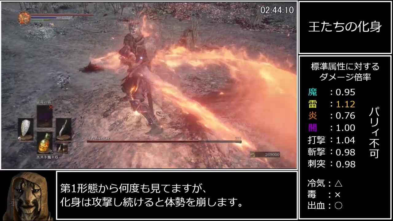 投稿ペースを落とさなかったので、褒めてください。<br><br><a href="https://www.nicovideo.jp/watch/sm36786863" class="watch">sm36786863</a>←前<br><br>Part 1:<span style="color: #000000; font-size: 14px;"><a href="https://www.nicovideo.jp/watch/sm36687145" class="watch">sm36687145</a></span><br>マイリスト:<a href="https://www.nicovideo.jp/mylist/68095261" target="_blank" rel="noopener">mylist/68095261</a><br><br>無編集版:<a href="https://youtu.be/Vcd6nD8ua5U" target="_blank" rel="noopener nofollow">https://youtu.be/Vcd6nD8ua5U</a><br><br>沢山のご視聴、コメント、マイリスト、広告ありがとうございました!<br>BGMの編集が楽しかった。<br><br><span style="color: #000000; font-size: 14px;">参考:<br>エネミー耐性表:</span><span style="color: #006699; font-size: 14px;"><a href="http://darksouls2verificationdata.web.fc2.com/damage-darksouls3.html" target="_blank" rel="noopener nofollow">http://darksouls2verificationdata.web.fc2.com/damage-darksouls3.html</a></span><br>