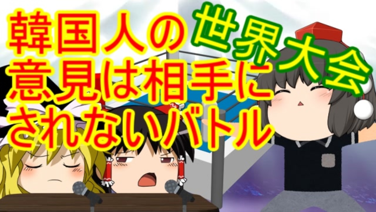 韓国人の意見が相手にされないバトルシリーズが遂に海外で!<br>【関連動画】<br><span style="color: #000000; font-size: 14px;">まとも韓国人は相手にされない:</span><a href="https://www.nicovideo.jp/watch/sm36709783" class="watch">sm36709783</a><br><span style="color: #000000; font-size: 14px;">まとも韓国人は相手にされない(第二回):</span><a href="https://www.nicovideo.jp/watch/sm36774599" class="watch">sm36774599</a><br><br>他のシリーズも宜しくね。<br><span style="color: #000000; font-size: 14px;">雑談シリーズ:</span><br><span style="color: #006699; font-size: 14px;"><a href="https://www.nicovideo.jp/series/75059" target="_blank" rel="noopener nofollow">https://www.nicovideo.jp/series/75059</a></span><br><span style="color: #000000; font-size: 14px;">文書シリーズ:</span><br><span style="color: #006699; font-size: 14px;"><a href="https://www.nicovideo.jp/series/76834" target="_blank" rel="noopener nofollow">https://www.nicovideo.jp/series/76834</a></span><br>ゆっくりドラマ(ギリシャ神話)シリーズ:<br><a href="https://www.nicovideo.jp/series/80739" target="_blank" rel="noopener nofollow">https://www.nicovideo.jp/series/80739</a><br>