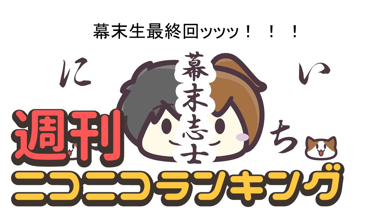 ■集計期間:4月27日5時~5月4日5時<br>■集計方法:再生数+コメント数×補正値+マイリスト登録数×25<br>■集計対象:公式ランキング(週間)のカテゴリ合算1000位内と全カテゴリ100位内<br>──────<br>まとめサイト:<a href="http://nicoranweb.com" target="_blank" rel="noopener nofollow">http://nicoranweb.com</a> | バックナンバー:<a href="https://www.nicovideo.jp/mylist/12653834" target="_blank" rel="noopener">mylist/12653834</a><br>プレイリスト:公開終了<br>──────<br>前週:<a href="https://www.nicovideo.jp/watch/sm36754969" class="watch">sm36754969</a> | 次週:<a href="https://www.nicovideo.jp/watch/sm36845531" class="watch">sm36845531</a><br>──────<br><span style="color: #ff0000;"><strong>■ニコラン公式通知 Twitter → @nico_ran<br>■編集部員、募集中です。</strong></span>詳しくは下記のページをご覧下さい。<br><span style="color: #0000ff;"><u><a href="http://j.mp/nicoran_boshu" target="_blank" rel="noopener nofollow">http://j.mp/nicoran_boshu</a></u></span><br>──────<br>【お借りしました】エンドカード:<a href="https://commons.nicovideo.jp/works/nc195592" target="_blank" rel="noopener">nc195592</a><br>